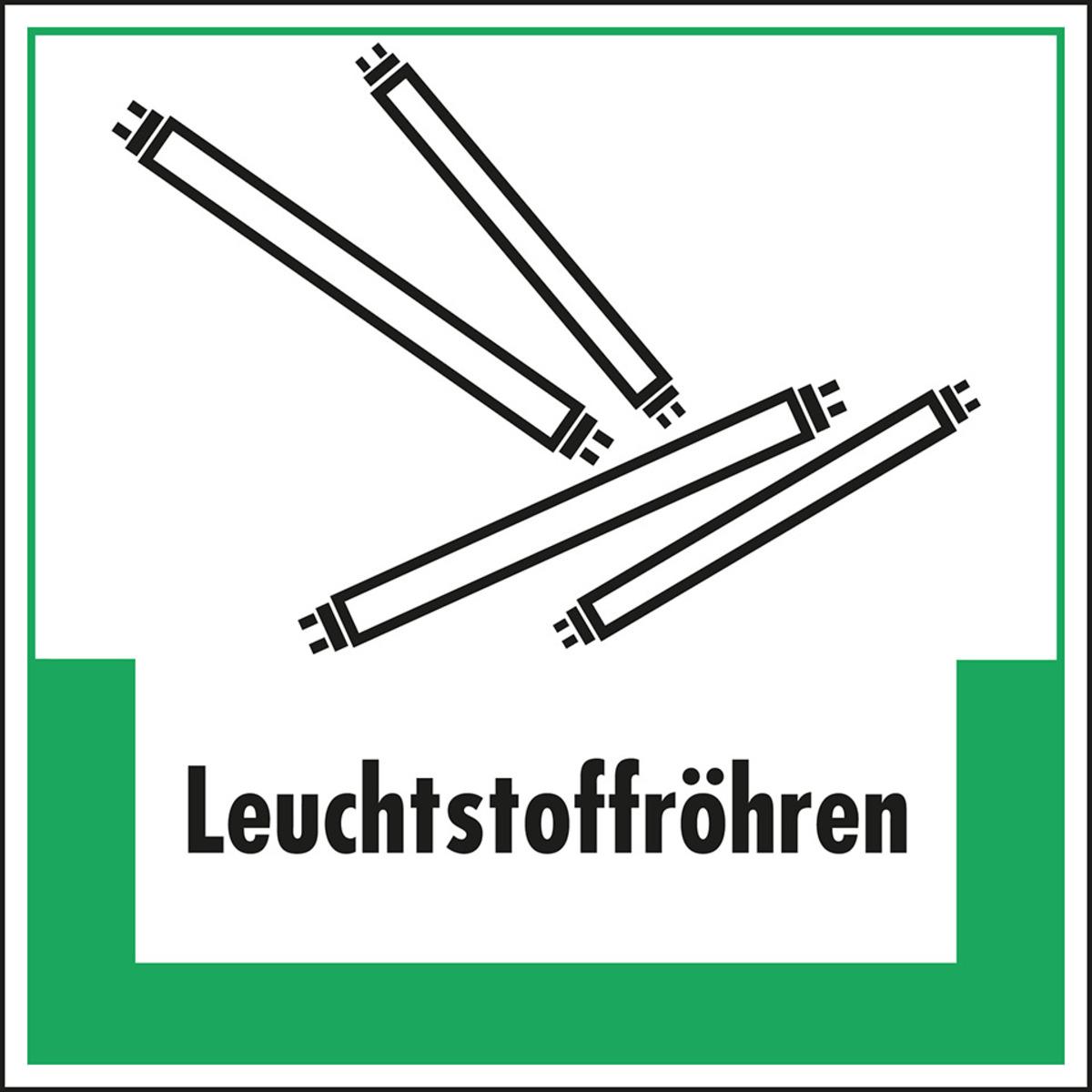 Auswahl: Abfallkennzeichen Leuchtstoffröhren, mit Symbol und Text, Kunststoff, 200x200mm