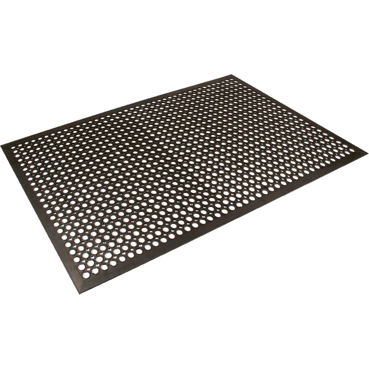 Die durchbrochene Anti-Ermüdungsmatte Rampat beugt frühzeitigen Ermüdungserscheinungen und Rutschgefahren vor. Abgeschrägte Mattenränder reduzieren die Stolpergefahr.