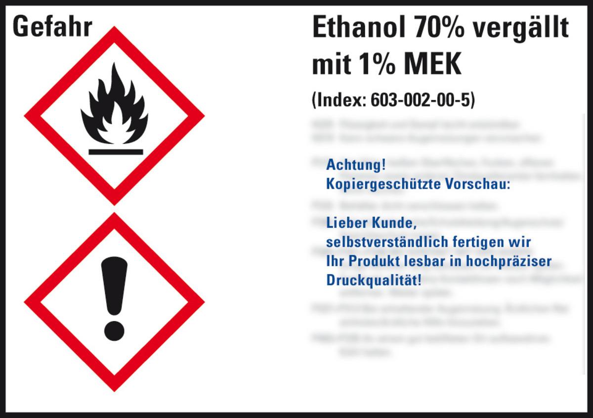 KSIGN Gefahrstoffetikett Ethanol 70 % vergällt mit 1 % MEK