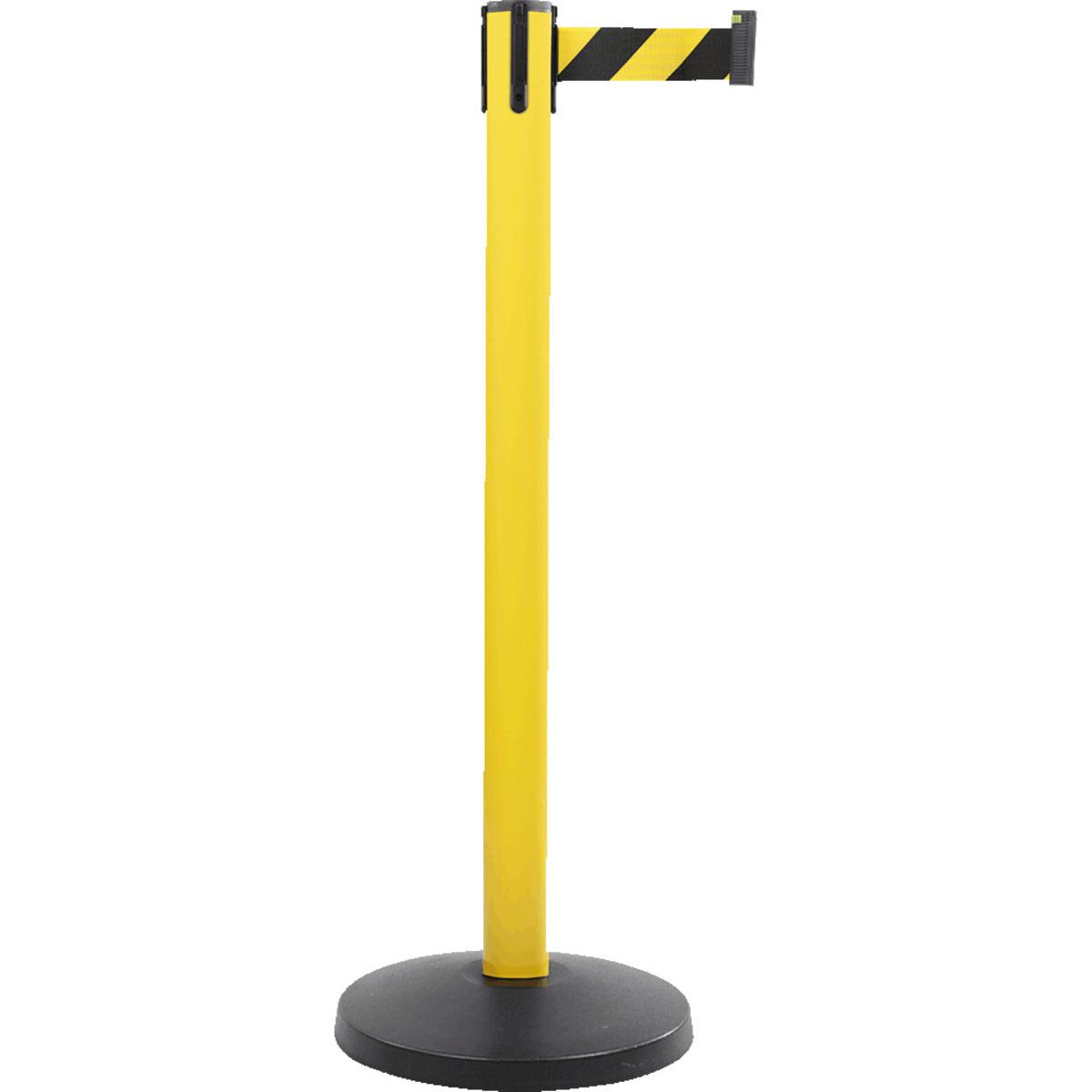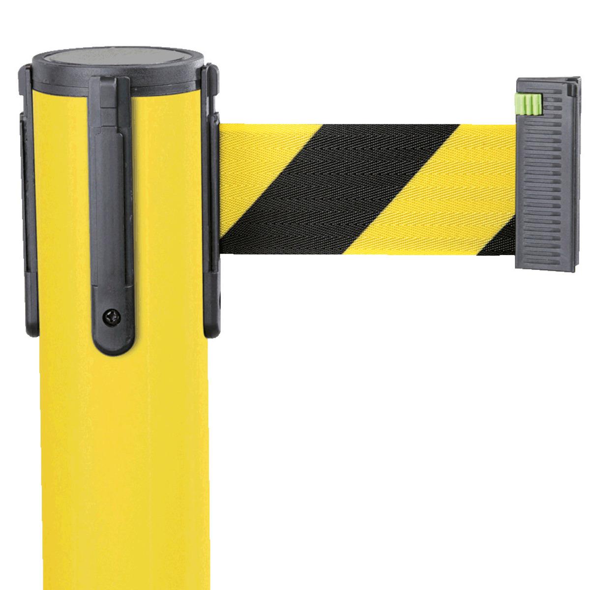 Auswahl: Gurtpfosten, gelb, Stahl, Gurt gelb/schwarz schraffiert, 50mm, 4m, 11kg