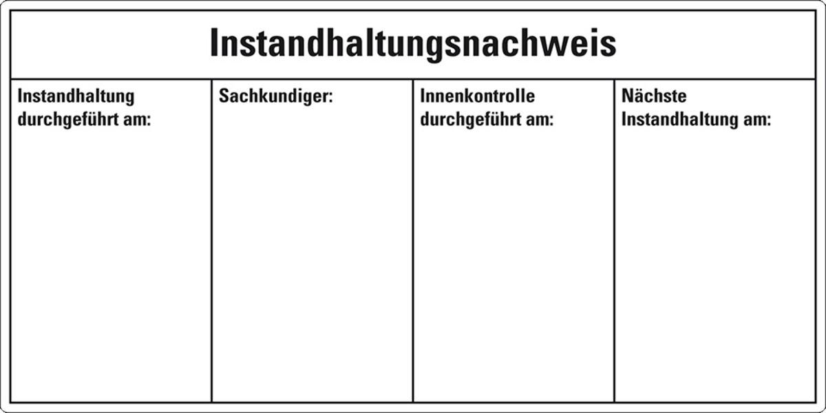 KSIGN Instandhaltungsnachweis Instandhaltungsnachweis 120 mm 60 mm Bogen