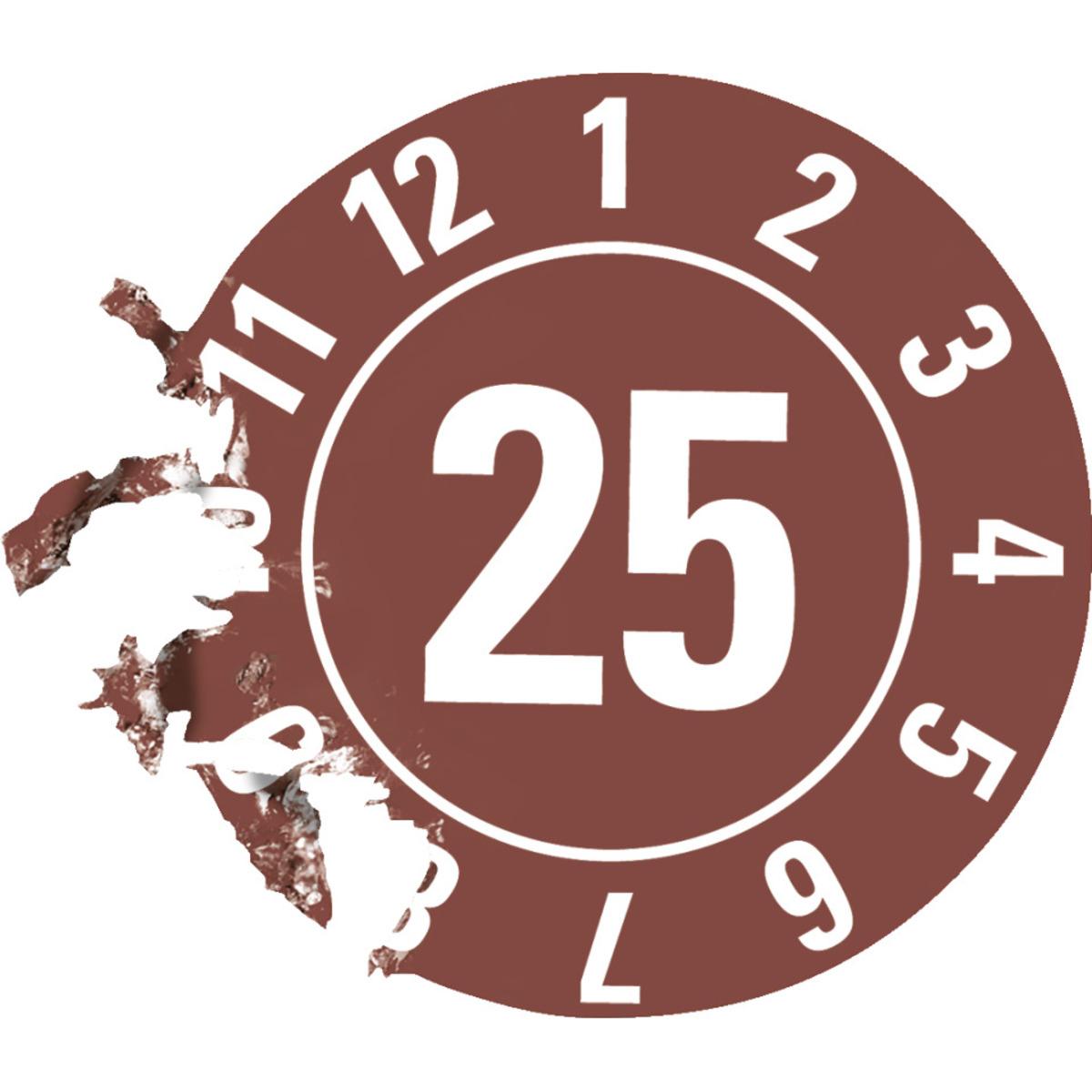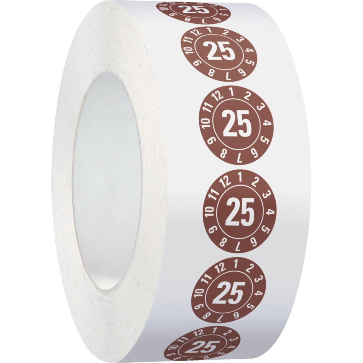 Auswahl: Jahresprüfplakette 25, braun, Dokumentenfolie, Ø 20mm, 500/Rolle