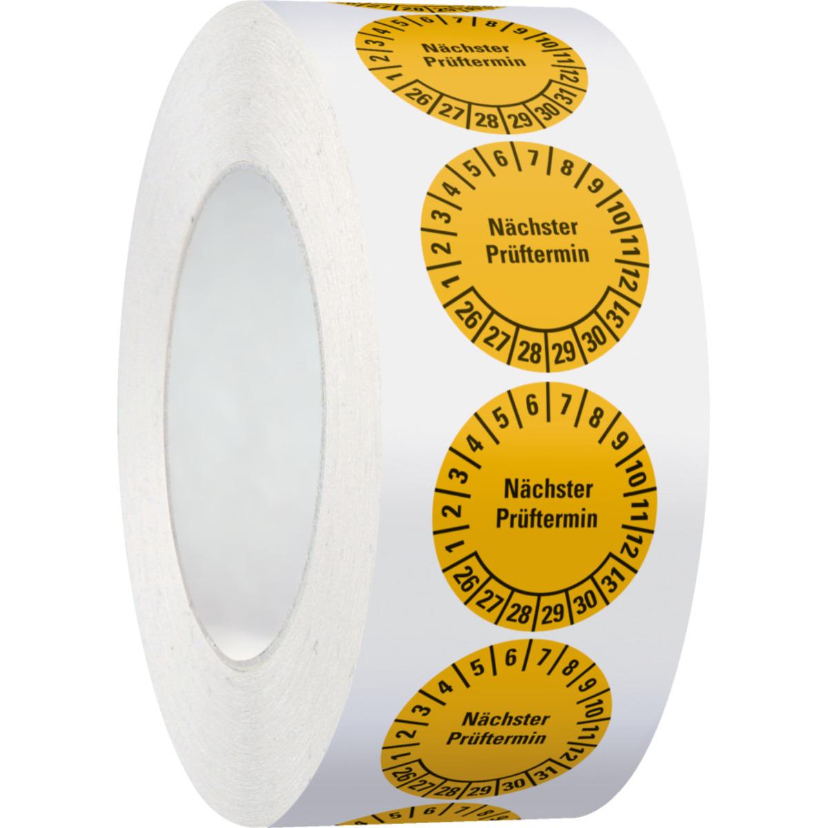 Auswahl: Prüfplakette Nächster Prüftermin 26-31, gelb, Dokumentenfolie, Ø 30mm, 500/Rolle