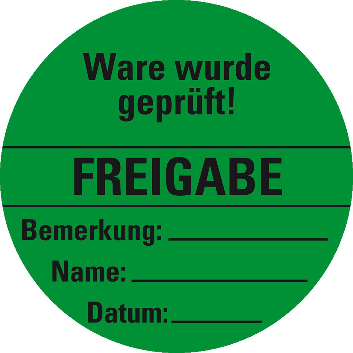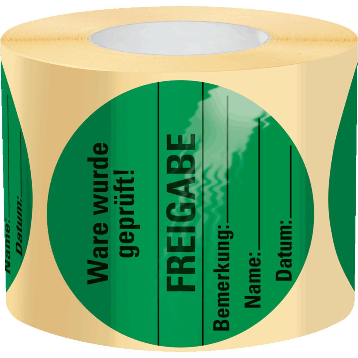 Auswahl: Organisationsetikett Freigabe, grün, Haftpapier, ablösbar, Ø 60mm, 500/Rolle