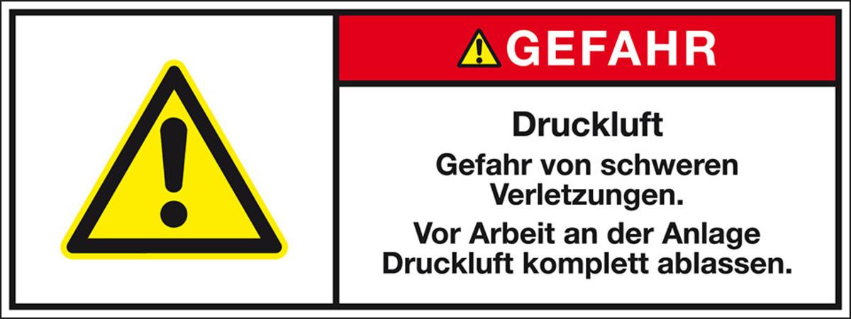 KSIGN Produktsicherheitsschild Signalwort: Gefahr Druckluft selbstklebende Folie