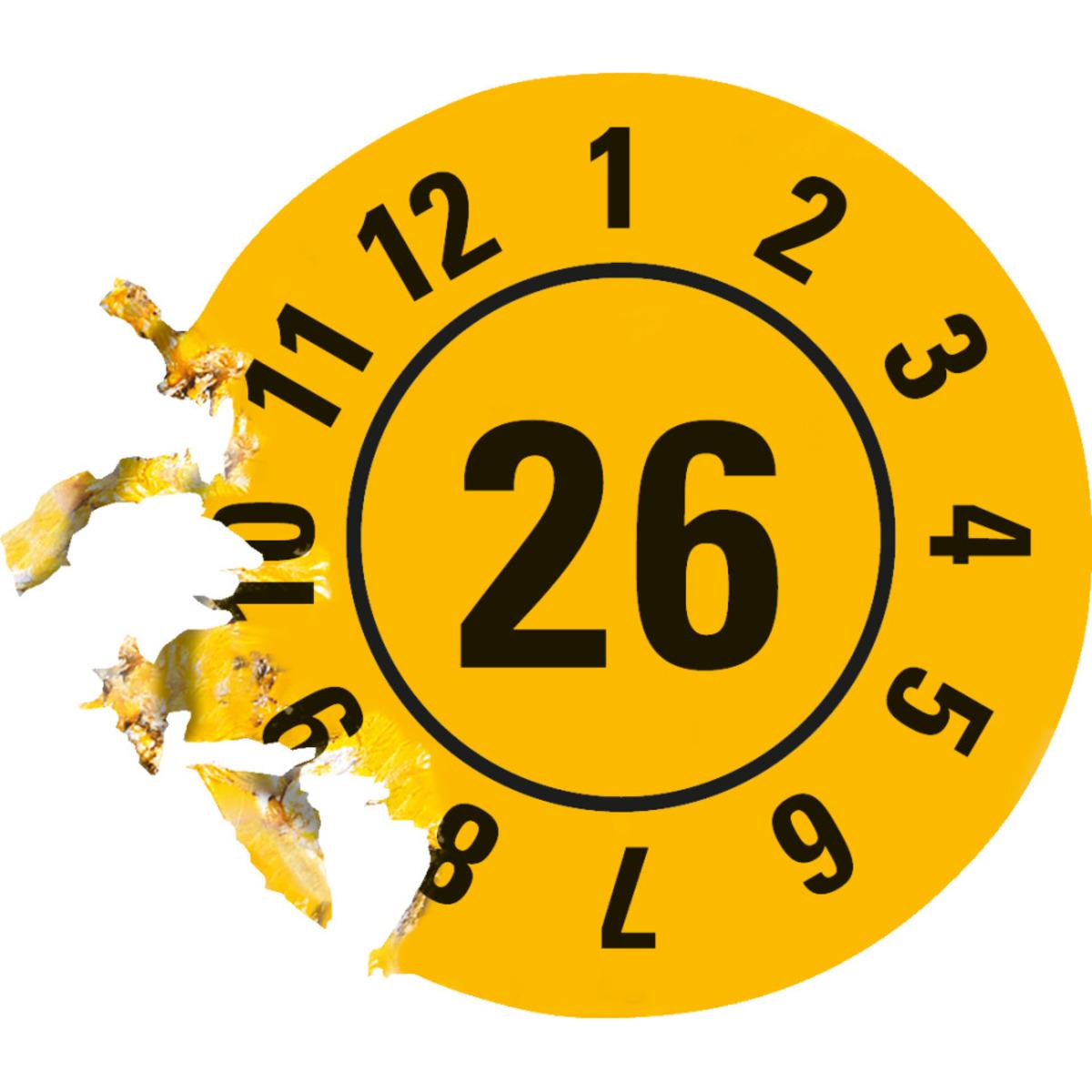 Auswahl: Prüfplakette 26, gelb, Dokumentenfolie mit Spezialkleber, Ø25mm, 21/Bogen