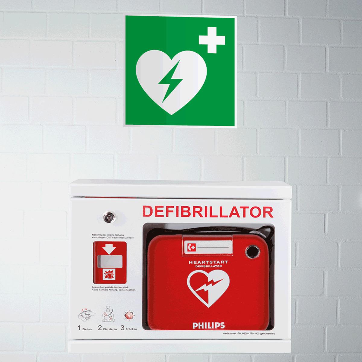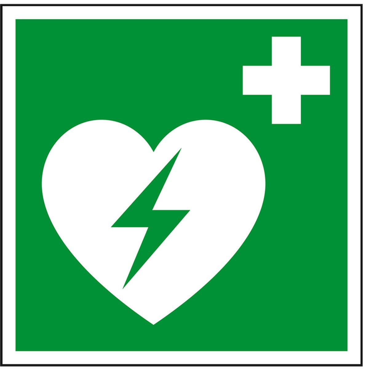MIt dem Rettungszeichen "Automatisierter externer Defibrillator" schützen Sie Leben und Gesundheit Ihrer Mitarbeiter, indem Sie Notfalleinrichtungen eindeutig kennzeichnen.