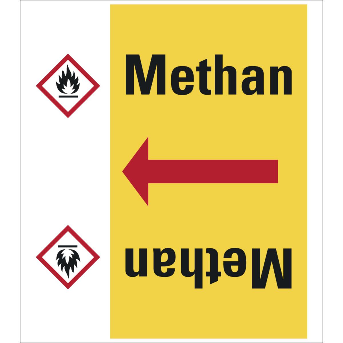 Auswahl: Rohrleitungsband Methan, praxisbewährt, ab Ø 50mm, gelb/schwarz, 33m/Rolle