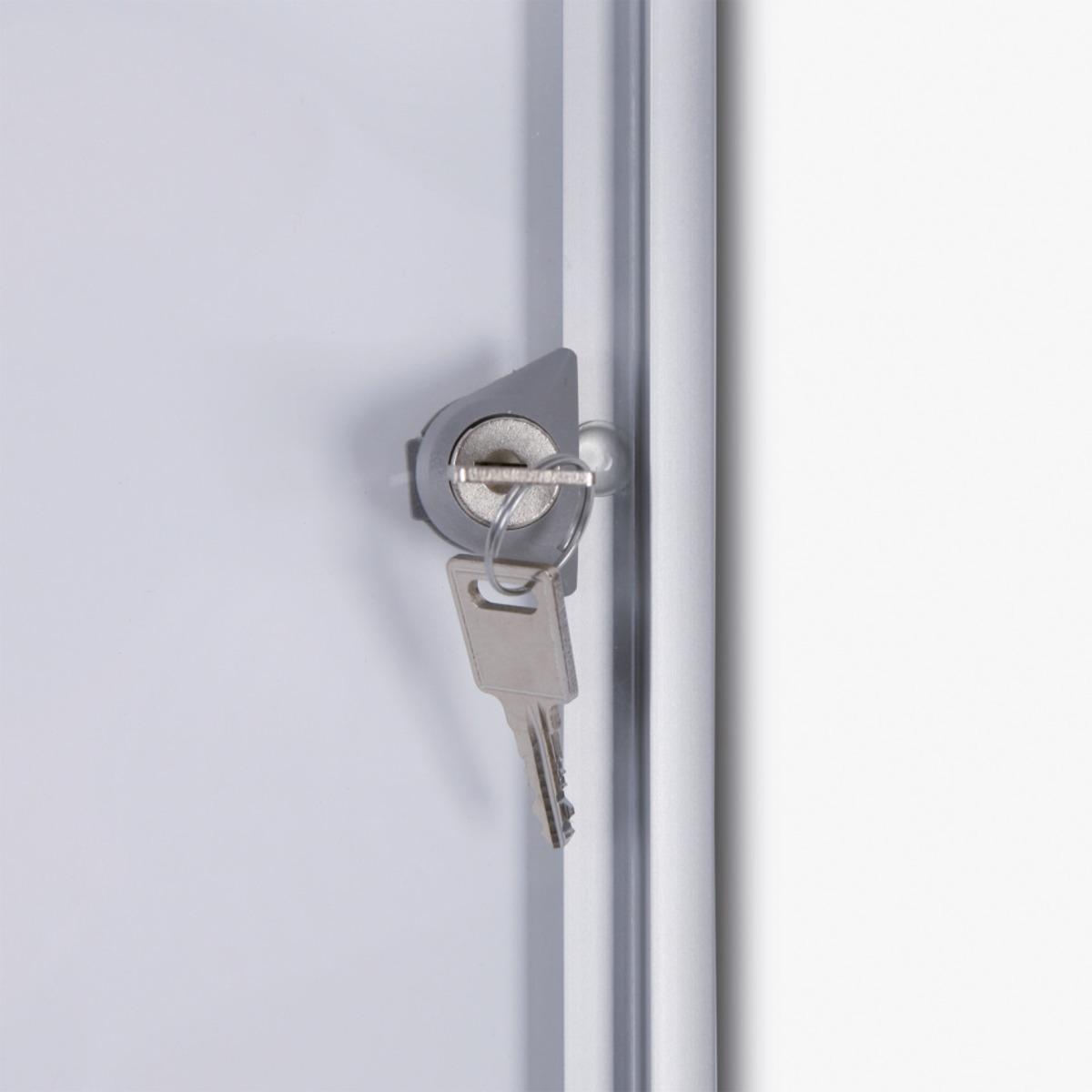 Schaukasten XS für Aushänge im A4-Format, für den Inneneinsatz, ideal für aushangpflichtige Informationen, die an der Rückwand auch mit Magneten befestigt werden können, alternativ ist eine Beschriftung der weißen Rückwand mit Markern möglich, verschließbar, mit abgerundetem Ecken