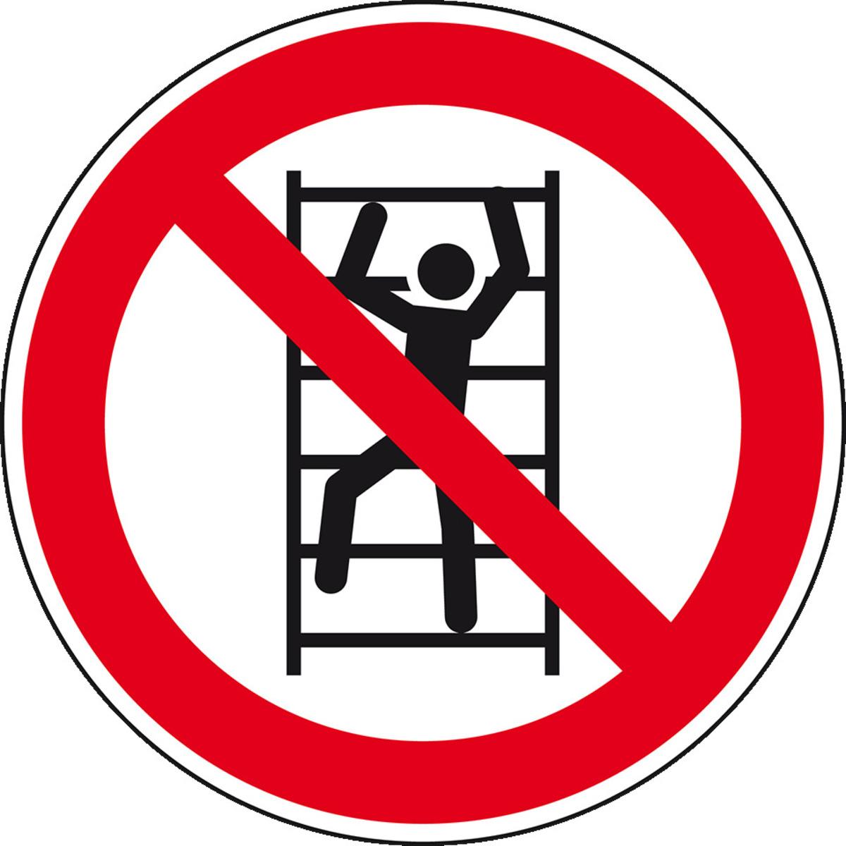 Verbotsschild "Aufsteigen verboten" zur Vorbeugung von Handlungen, die Ihre Mitarbeiter in Gefahr bringen oder Unfälle verursachen können