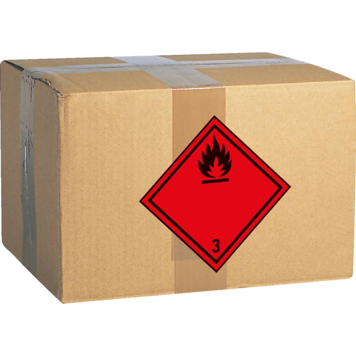 Informieren Sie mit dem Verpackungskennzeichen Klasse 3 - "Entzündbare Flüssigkeiten" Spediteure und Empfänger über Inhalt und Handhabung der Versandstücke, um die Sicherheit des Gefahrguts und der beteiligten Personen zu gewährleisten.