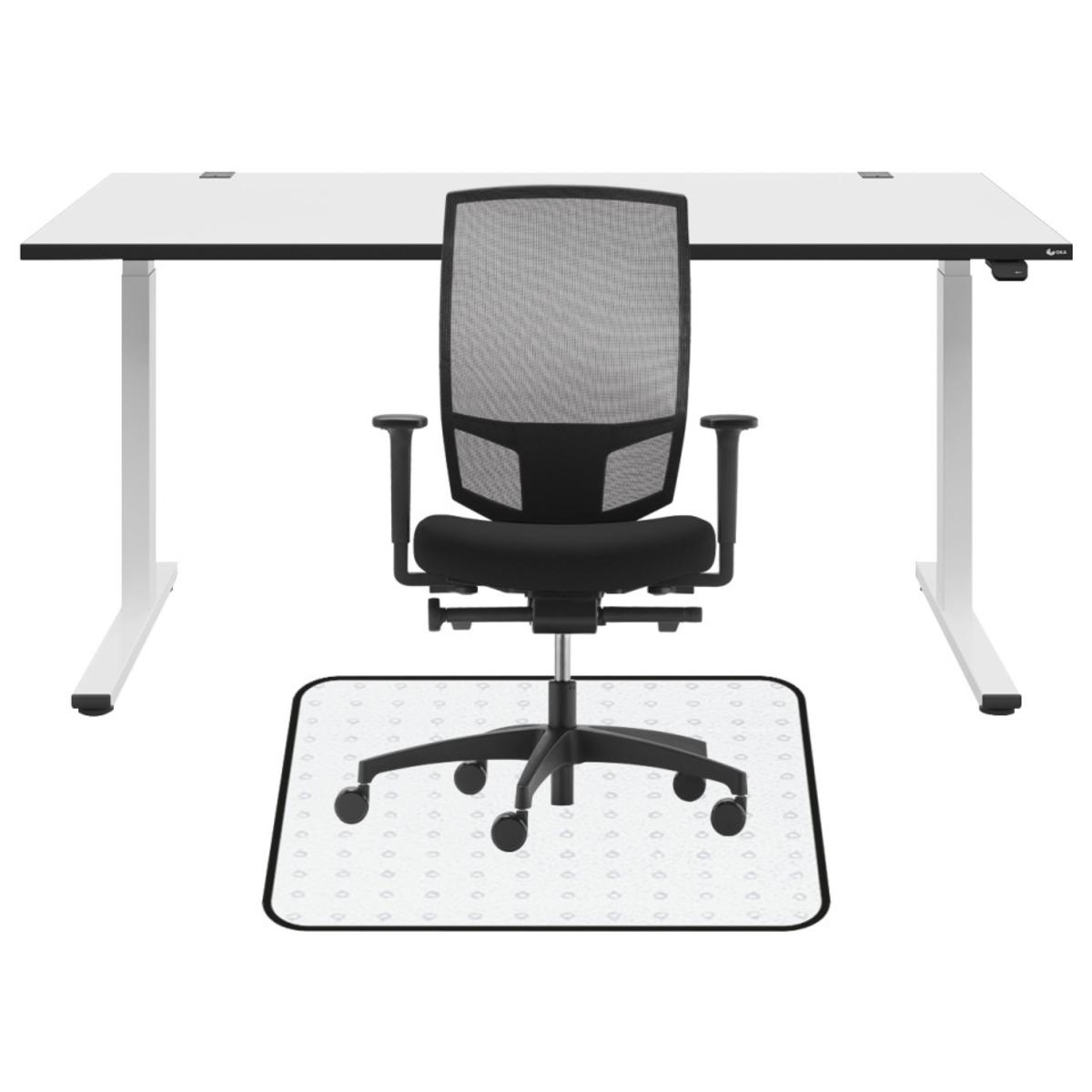 Auswahl: Vorteils-Set, Schreibtisch höhenverstellbar, Drehstuhl, Bodenmatte für harte u. glatte Böden