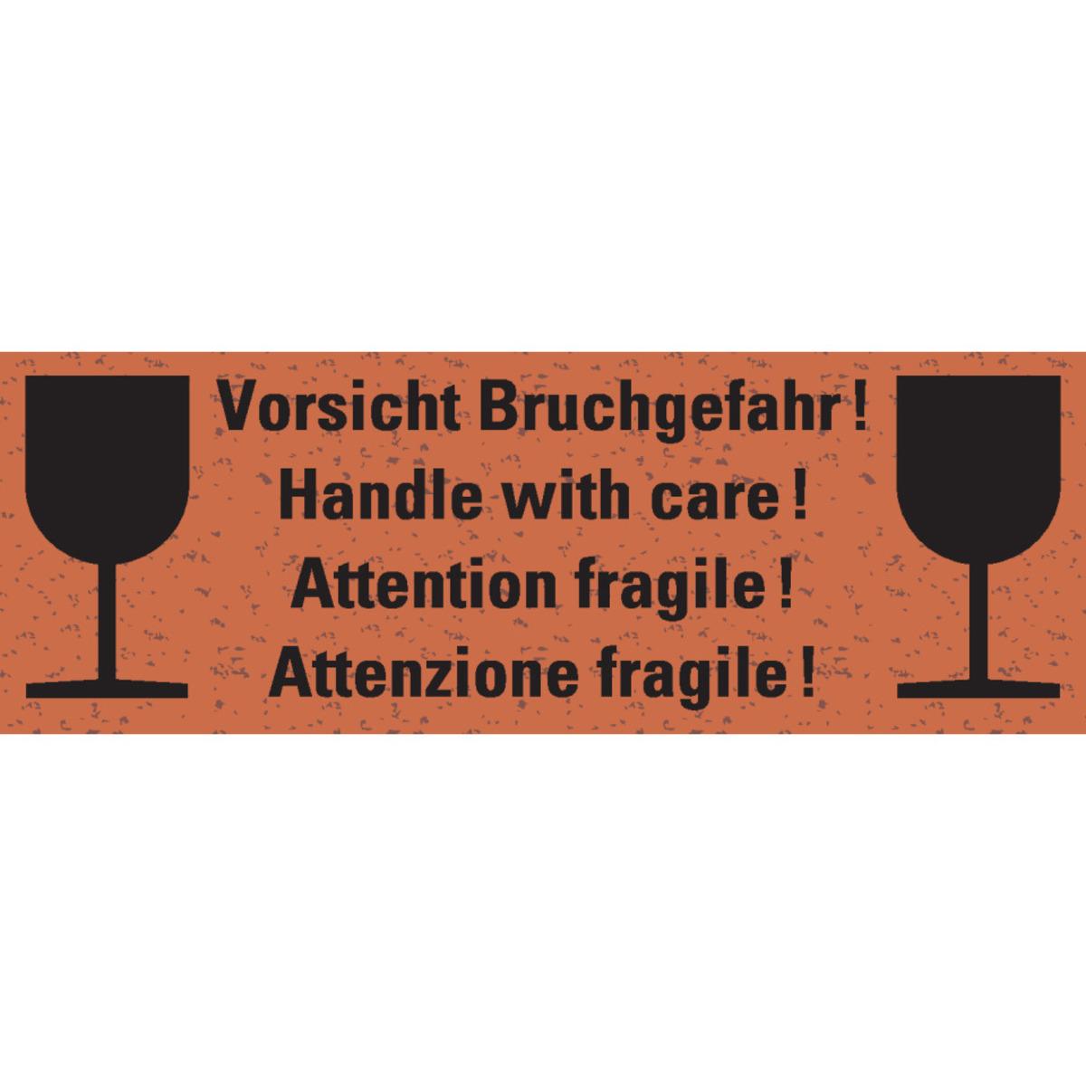 Auswahl: Warnetik.Vorsicht Bruchgefahr!, 4spr., rot, Primärfaser-Graspapier, 147x50mm, 6/Bogen