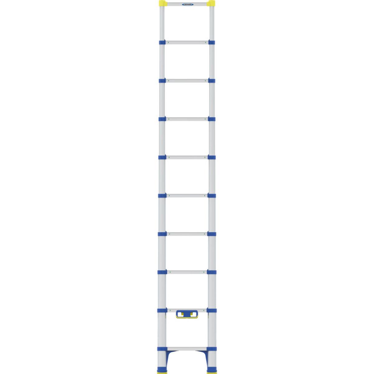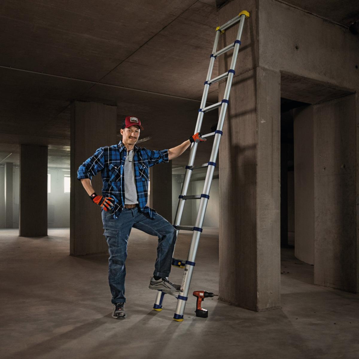 Die Alu-Teleskop-Anlegeleiter von WERNER® lässt sich mit einer verstellbaren Länge von 2,9 m bis 0,79 m im zusammengeklapptem Zustand besonders einfach transportieren und lagern. Ohne Finger einklemmen mit Soft-Close-Design einfach zusammenschieben, automatischer Verriegelungsmechanismus, Einhand-Entriegelungssystem für einfaches Schließen.