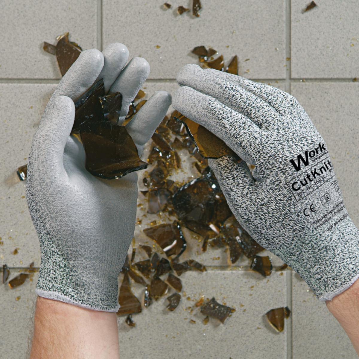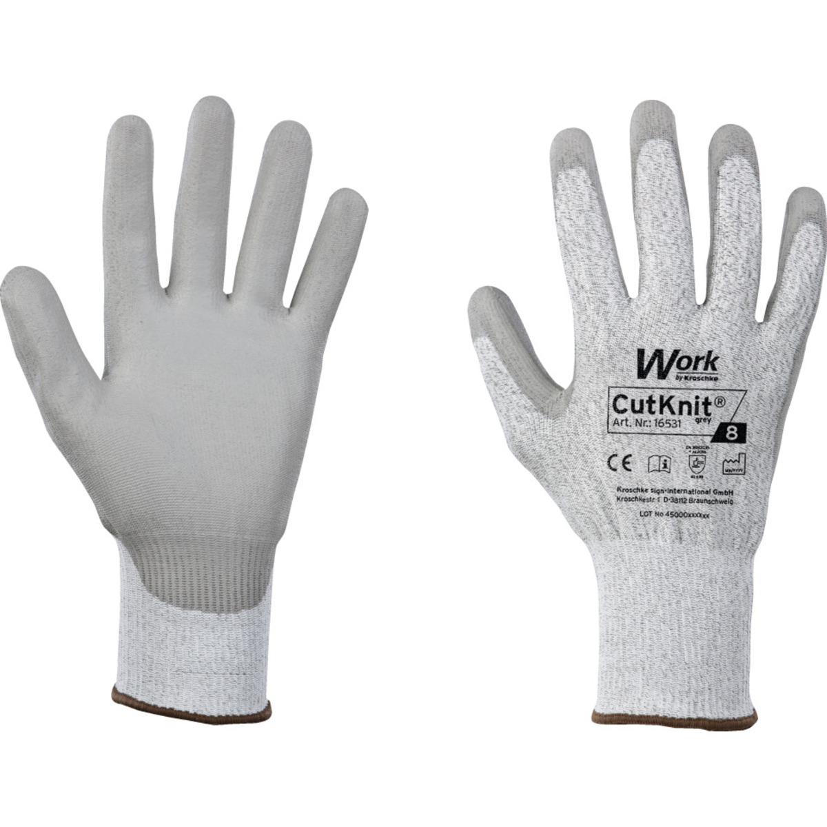 Auswahl: Work Schnittschutz-Handschuh CutKnit® grey, Kat.II, HPPE, PU-beschichtet, Größe 10