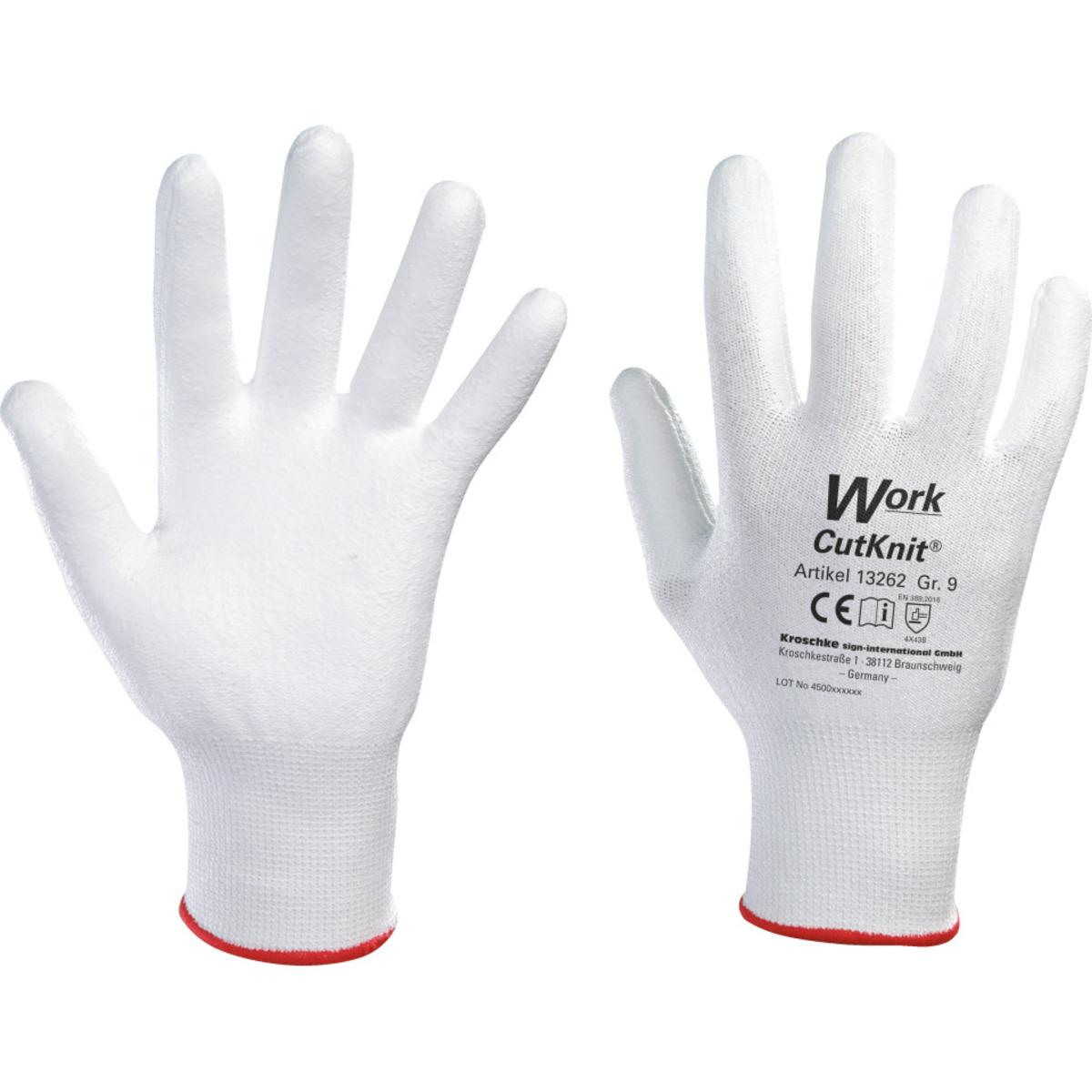 Auswahl: Work Schnittschutz-Handschuh CutKnit®, Kat.II, weiß, HPPE, PU-beschichtet, Größe 9