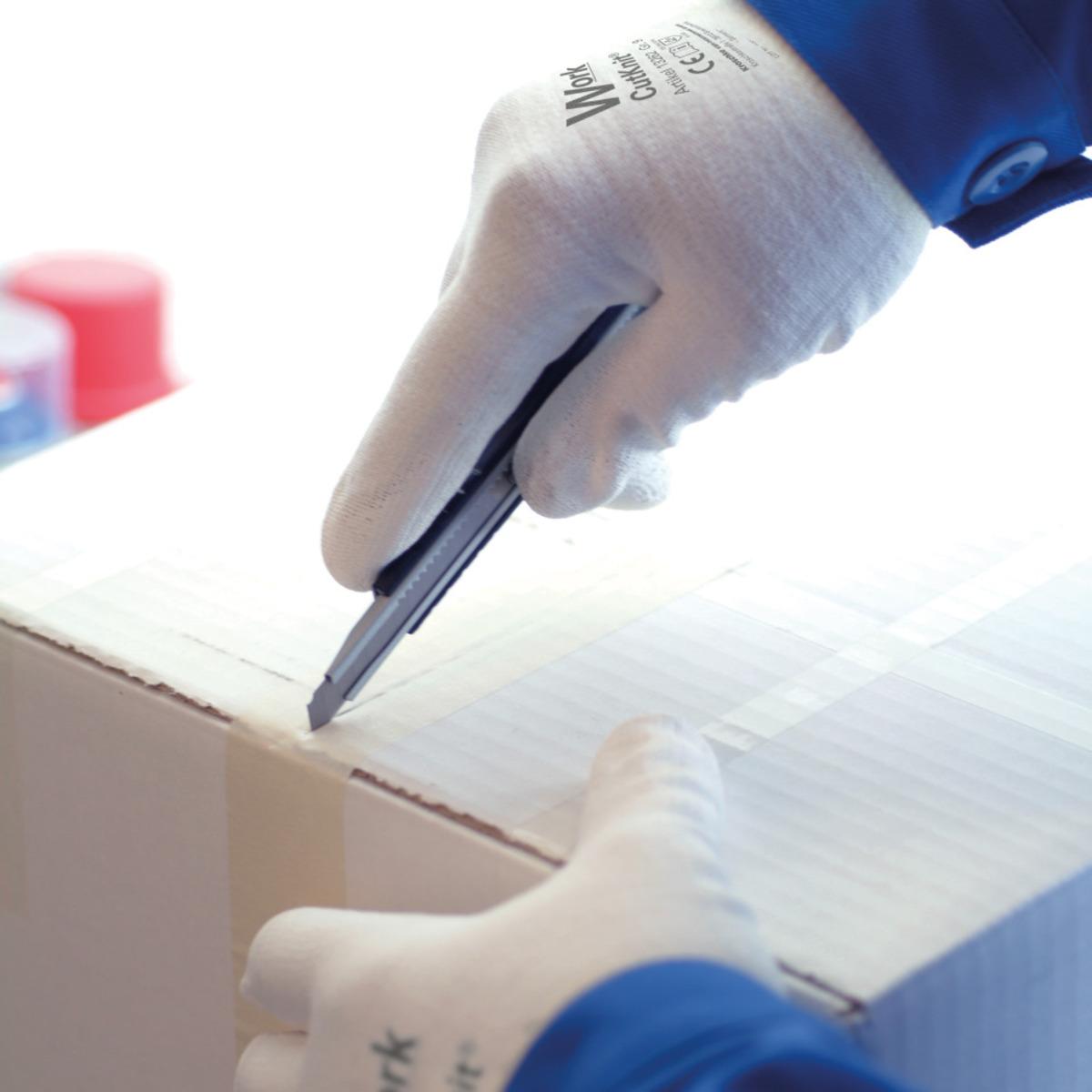 Leistungsfähiger Schnittschutzhandschuh CutKnit® mit weißer Teilbeschichtung auf der Innenhand für Arbeiten mit scharfkantigen Gegenständen, abriebfest, höchste Fingerbeweglichkeit, nahtlos gestrickt, atmungsaktives Trikot, Stickbündchen