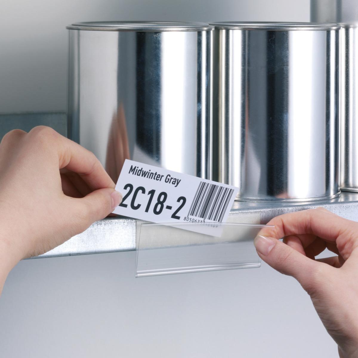 Oben und seitlich offene sowie variabel zuschneidbare Scannerschienen mit selbstklebender Rückseite, ideal zur Artikelkennzeichnung.