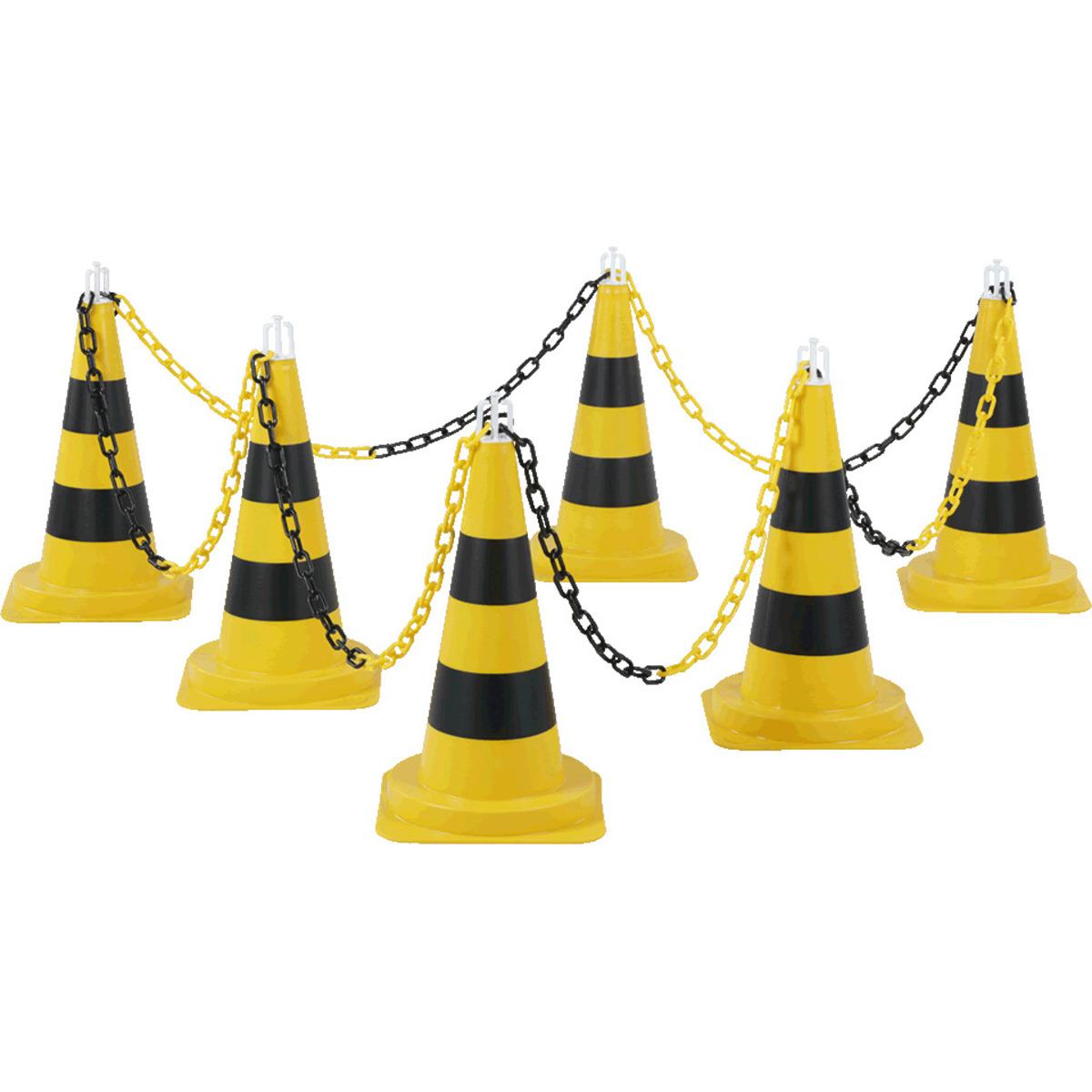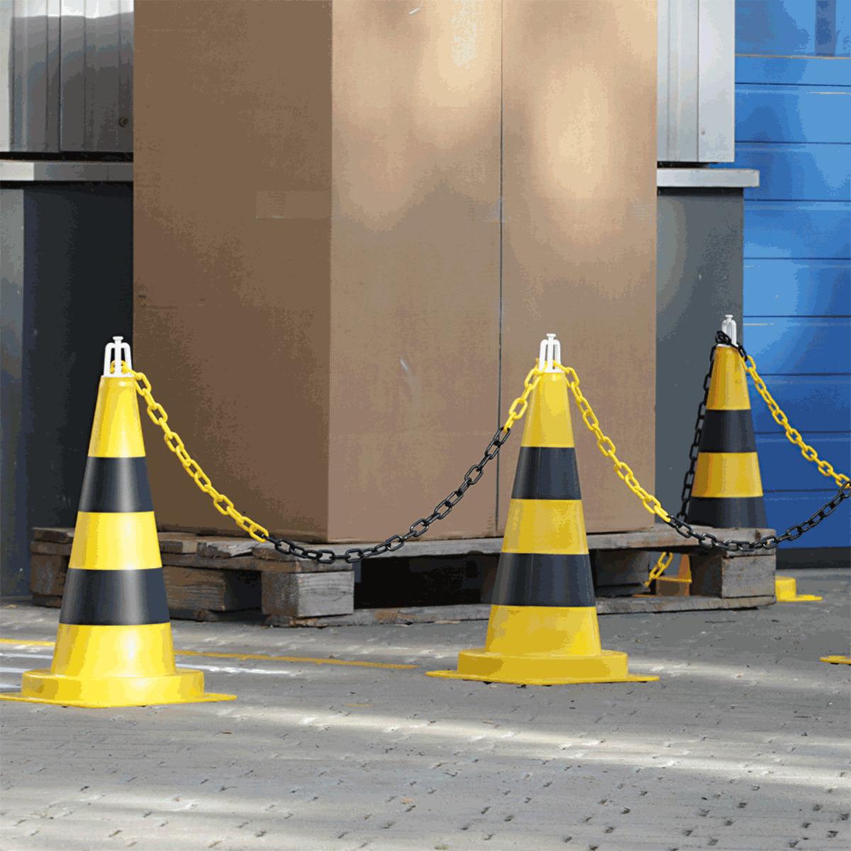 Auswahl: Leitkegel-Absperrset Medium, 6 Kegel, 6 Haken, 10m Kunststoffkette, gelb/schwarz