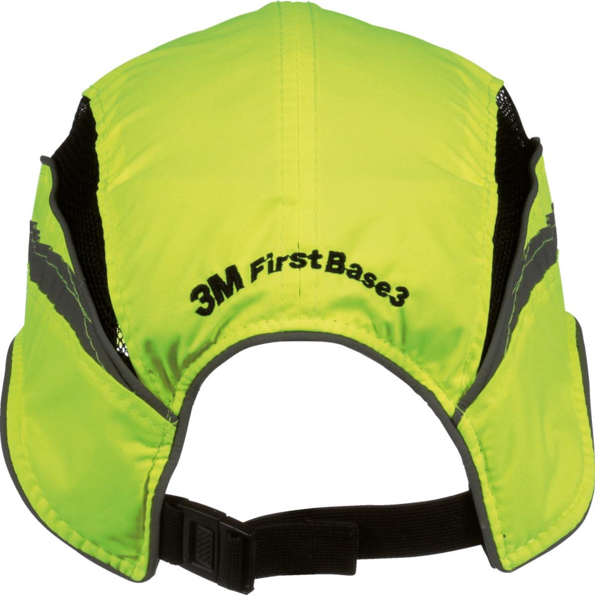 Einfarbige Anstoßkappe 3M™ First Base 3 Elite in Warnfarben mit Reflexband und Kurzschirm, stoßabsorbierende Schaumstoffeinlage, großer Belüftungsbereich, umlaufendes Gewebe-Schweißband, bogenförmige Gestaltung über dem Ohr zur Kompatibilität mit anderer PSA, maschinenwaschbar bis 40°C
