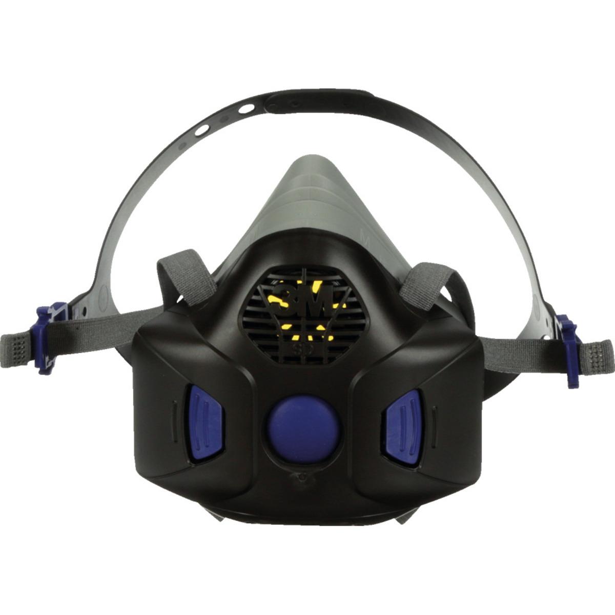 3M™ Secure Click Mehrweg-Atemschutz-Halbmaske Serie HF-802SD zum Schutz vor Gasen, Dämpfen und Partikeln, intuitives Design mit Secure Click Anschluss, 4-fach Luftstrom-Filterkartuschensystem für leichteres Atmen, mehr Sicherheit durch Dichtsitzkurzprüfung per Knopfdruck, Sprechmembran für eine erleichterte Kommunikation, schneller und einfacher Kartuschen-/Filteranschlus