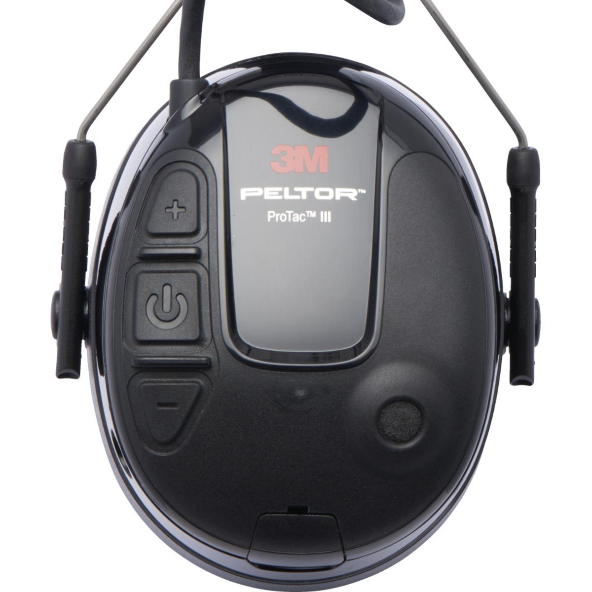 Aktiver 3M™ PELTOR™ Kapselgehörschützer ProTac™ III schützt vor schädlichem Impulslärm, während gleichzeitig Umgebungsgeräusche unter 82 dB wahrnehmbar sind für optimale Sprach- und Signalerkennung, mit Audioeingang 3,5 mm stereo (auf 82 dB begrenzt) zum Anschluss von externen Geräten