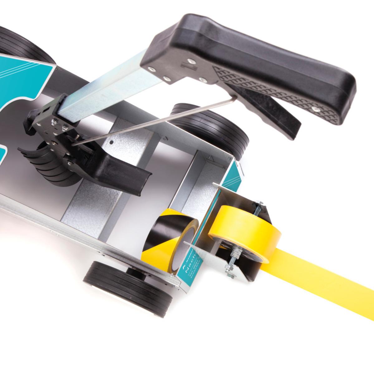 Vorteils-Set A.M.P.E.R.E. Markiergerät New SUPER-Striper® mit Tape-Applicator für die Kennzeichnung von Wegen und Plätzen für den industriellen Einsatz. Der Tape-Applicator erweitert den SUPER-Striper® vom Markierwagen für Sprühfarben zum Markierwagen für Bodenmarkierungsbänder. Der Applicator wird an der Rückseite des SUPER-Striper® mit 2 Schrauben fixiert. Er ist geeignet für Bodenmarkierungsbänder von 50 und 75 mm Breite (ohne Schutzfolie).