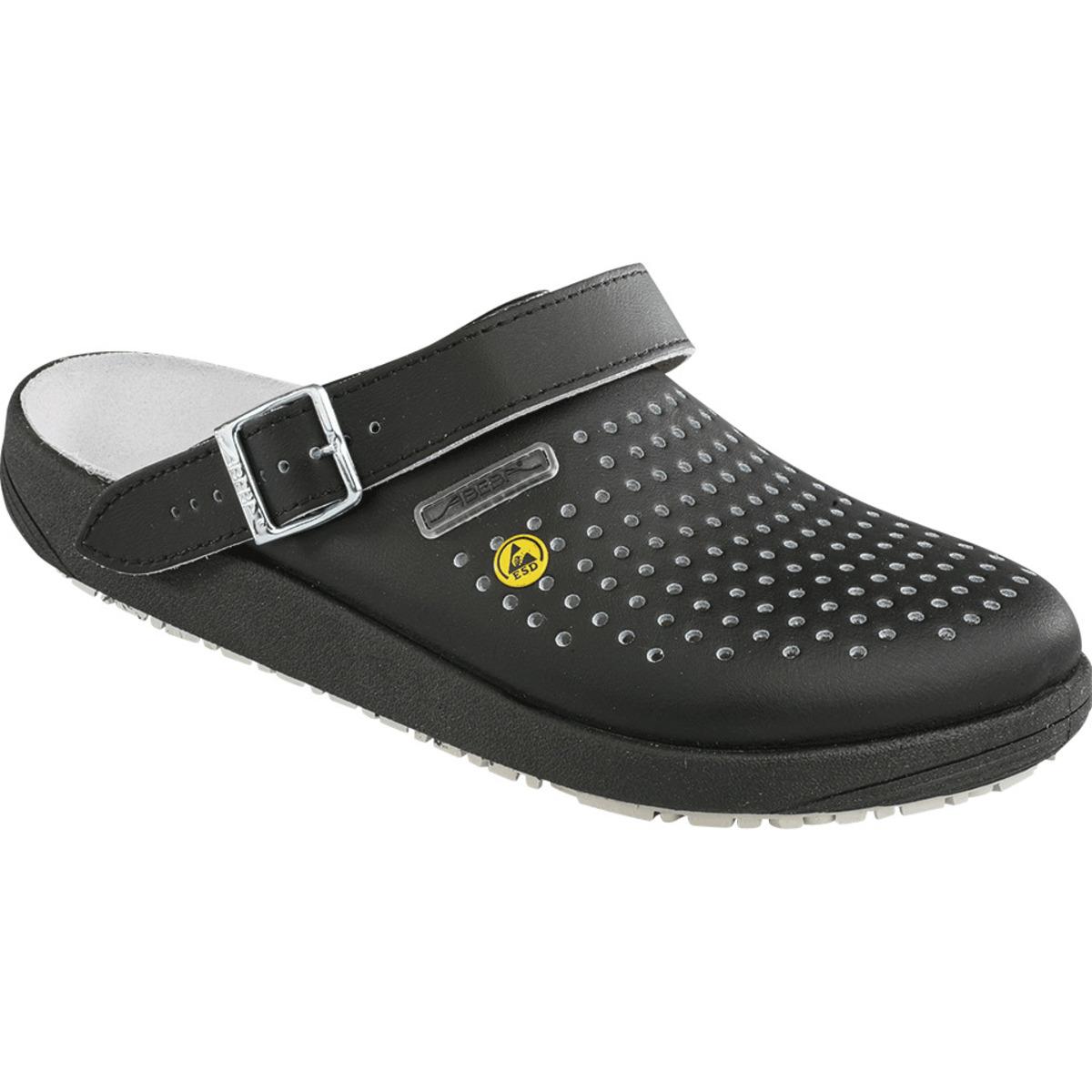 ABEBA ESD-Sicherheitssandale Rubber (OB A SRA), verstellbarer und klappbarer Fersenriemen, antibakteriell, geruchs- und bakterienhemmend, rutschhemmende Gummi-Laufsohle