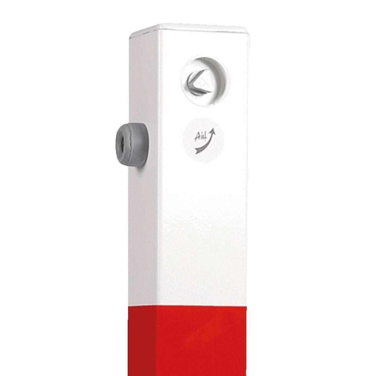 Robuster Absperrpfosten Rom zum Sperren oder Sichern von Einfahrten, Parkplätzen oder Privatwegen, umklappbar und dadurch überfahrbar, Vierkantrohr, Auflage mit Gummipuffer