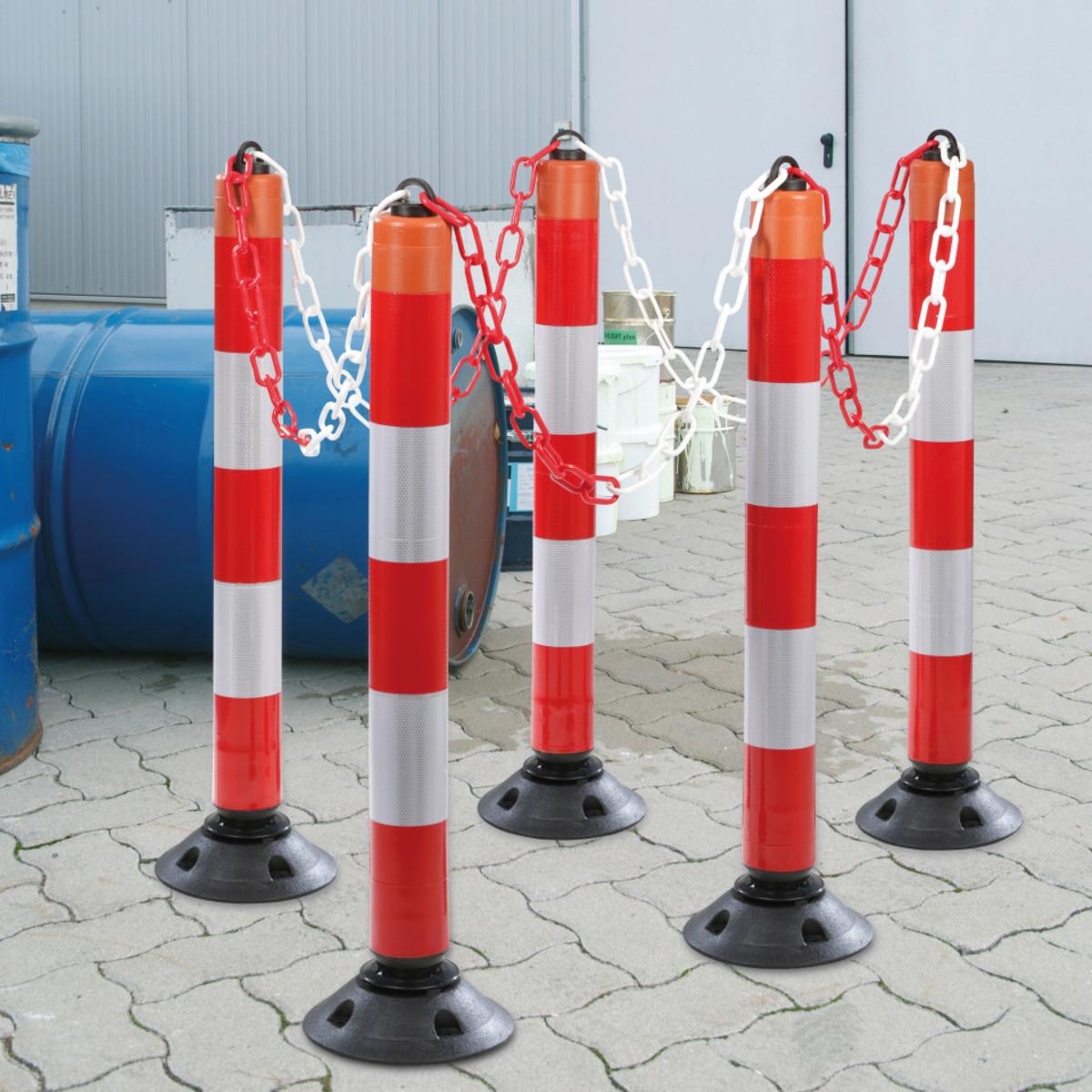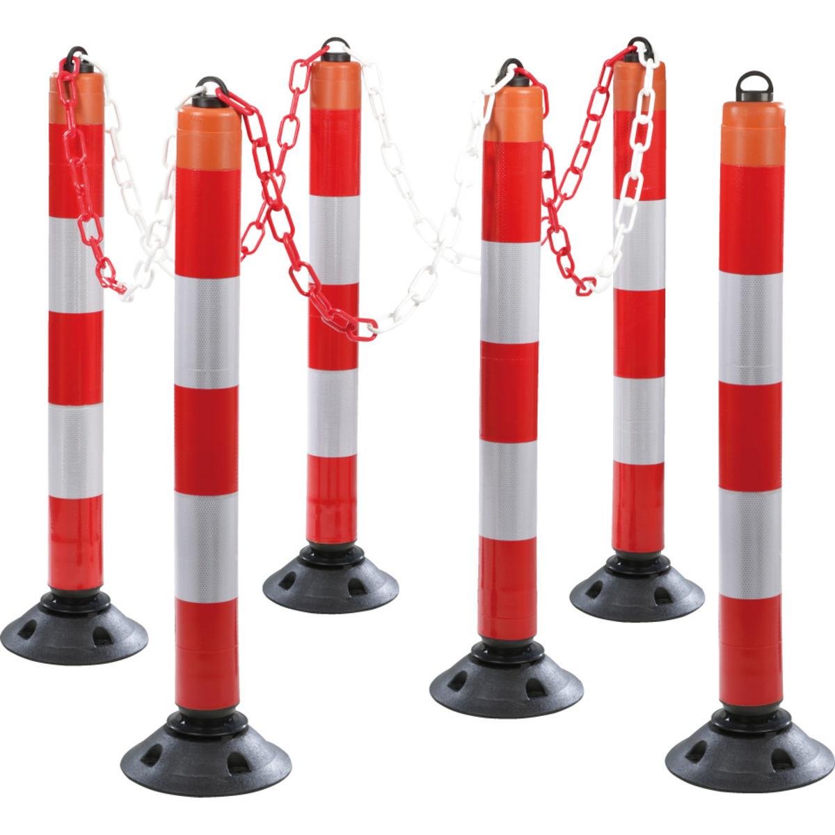 Auswahl: Absperrpfosten-Set LeitPin, 6-tlg., mit Zylinderfuß, anfahrbar, rot/weiß, 1050mm