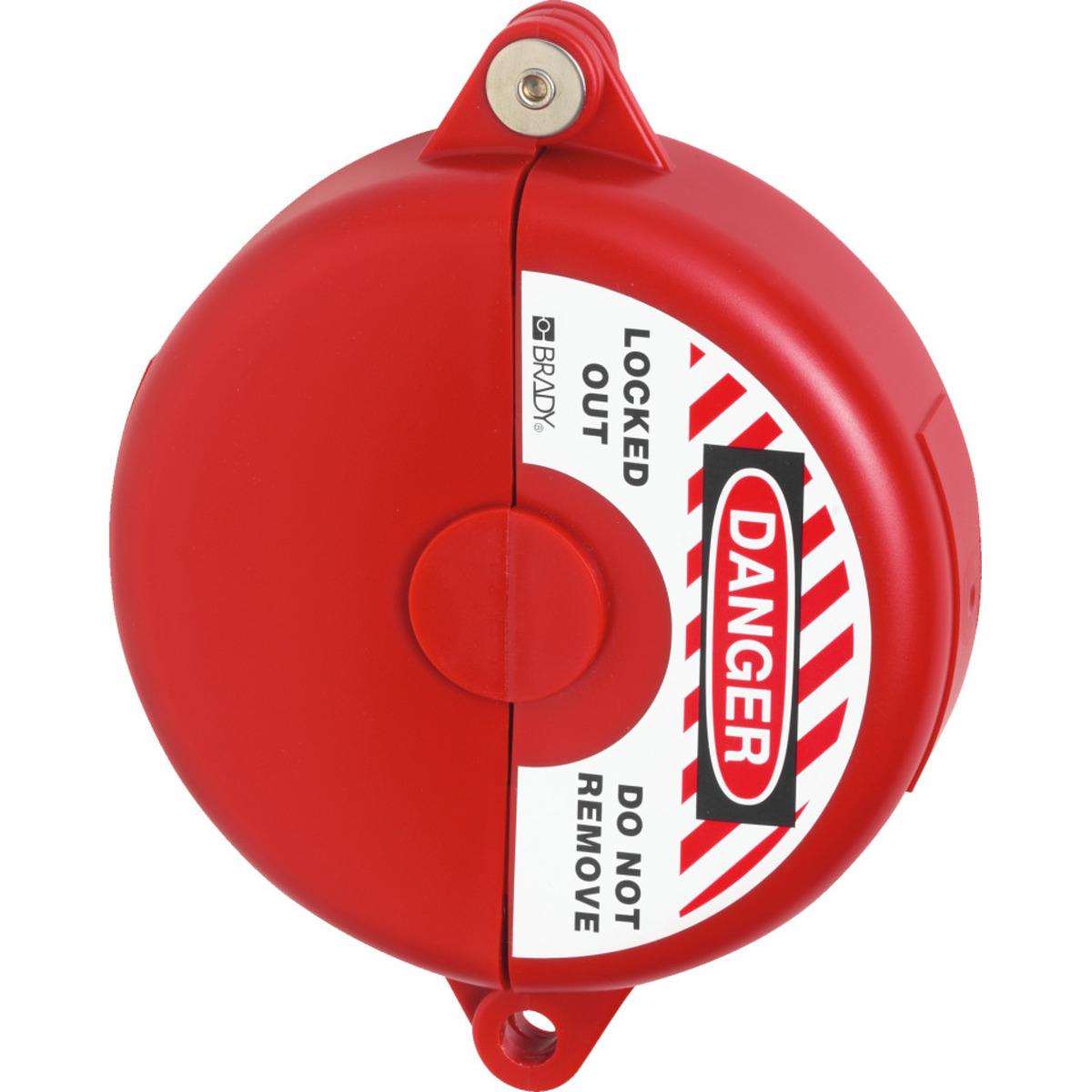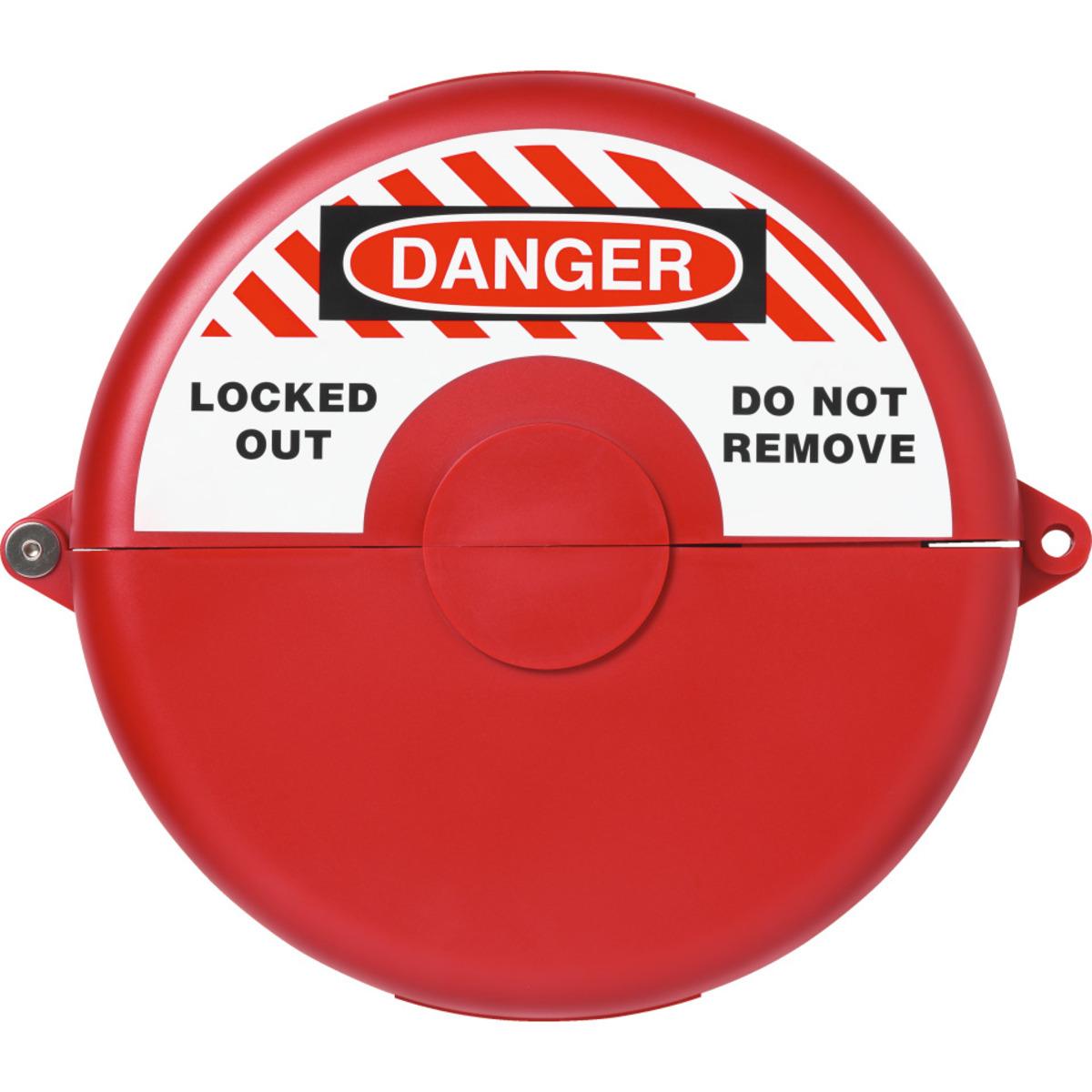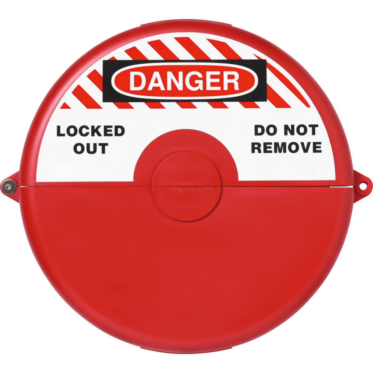 ABUS Handrad-Verriegelungen für Durchgangsventile, zur schnellen Sicherung unterschiedlichster Ventile, einfaches Anbringen von Vorhängeschlössern möglich, mit Ausklink-Stelle für Handräder mit Spindel