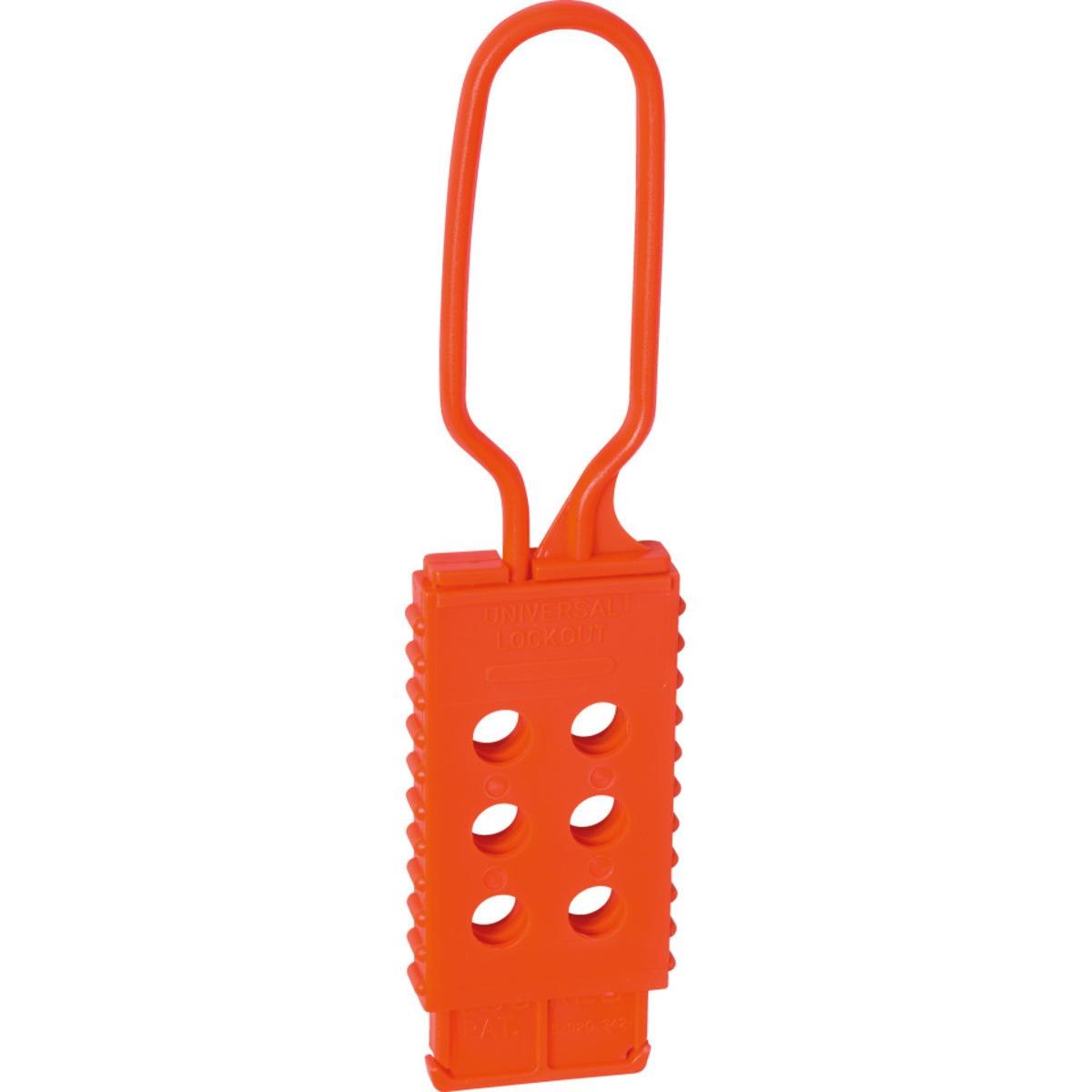 ABUS Hauptschalter-Verriegelungen, nichtleitend, aus Kunststoff zur Sicherung von Schaltanlagen und Hauptschalter im Wartungsfall, zum Einhängen von bis zu sechs Schlössern für eine gleichzeitige Absicherung und Wartung durch mehrere Personen, unbeabsichtigtes Wiedereinschalten wird einfach und effektiv verhindert.
