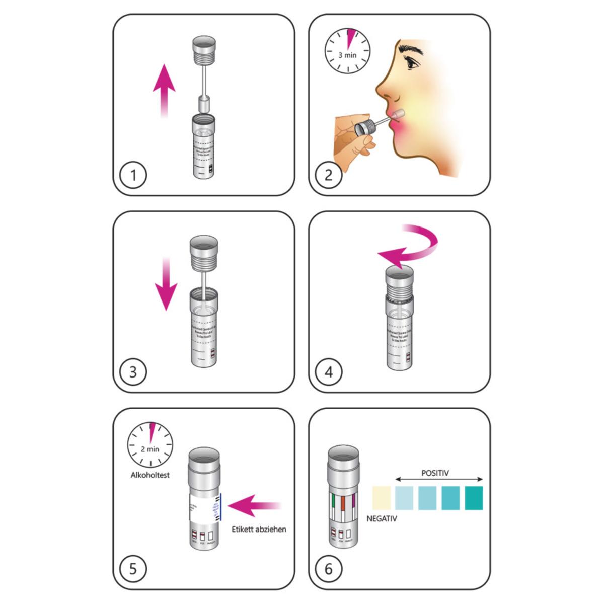 Einweg Speicheltest zum Nachweis des aktuellen Blutalkoholspiegels, für mehr Sicherheit im Straßenverkehr und am Arbeitsplatz. Das Ergebnis entspricht nahezu dem Ergebnis einer Alkoholblutprobe, einfache Anwendung, gibt innerhalb von wenigen Minuten ein zuverlässiges Ergebnis.