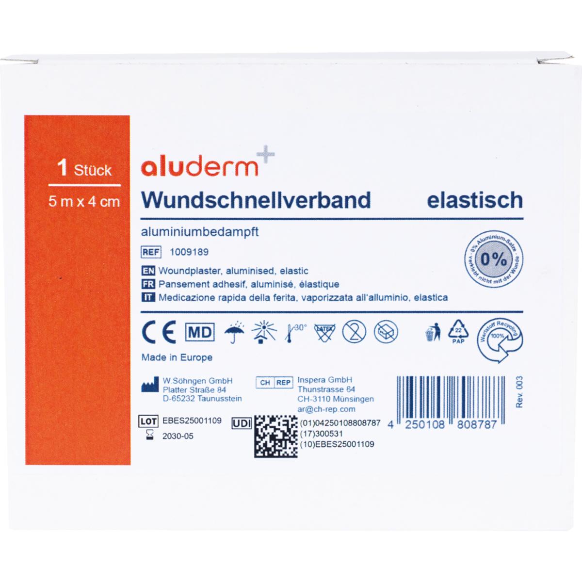 Zuschneidbarer aluderm® Wundschnellverband zur Versorgung von Wunden. Gut luftdurchlässig, wasserabweisend, hypoallergen, verklebt nicht mit der Wunde.