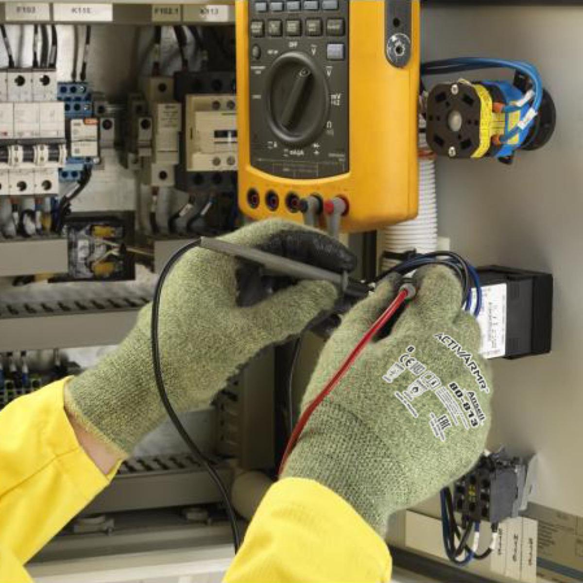 Schwer entflammbare Schutzhandschuhe mit hohem Schnittschutz, schützt gegen Gefahren eines elektrischen Lichtbogenüberschlags, silikonfrei, mit Strickbund