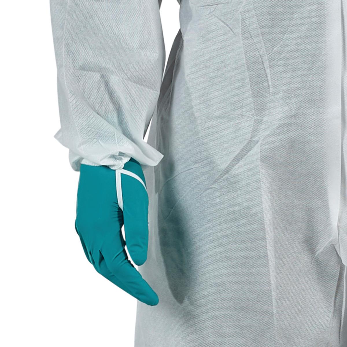 Antistatischer Ansell Microgard® 1500 Plus Einweg Schutzanzug Typ 5 und 6 mit 3-teiliger Kapuze, Gummizüge an Kapuze, Taille sowie Arm-/Beinabschlüssen, 2-Wege-Frontreißverschluss mit wiederverschließbarer Abdeckblende, Fingerschlaufen, gute Barriere gegen Asbest-, Staub- oder Zementpartikel, schützt vor leichten Sprühnebeln