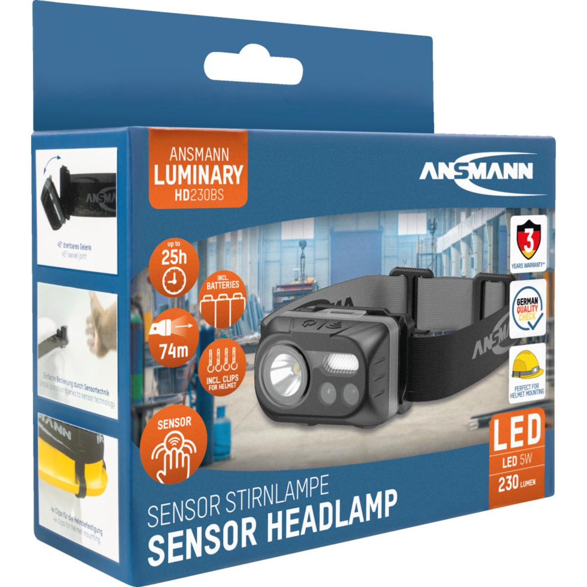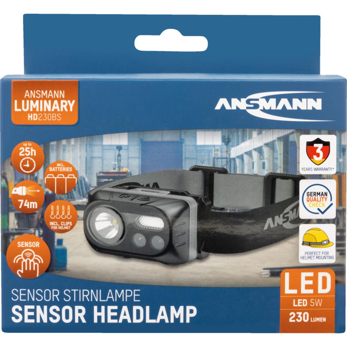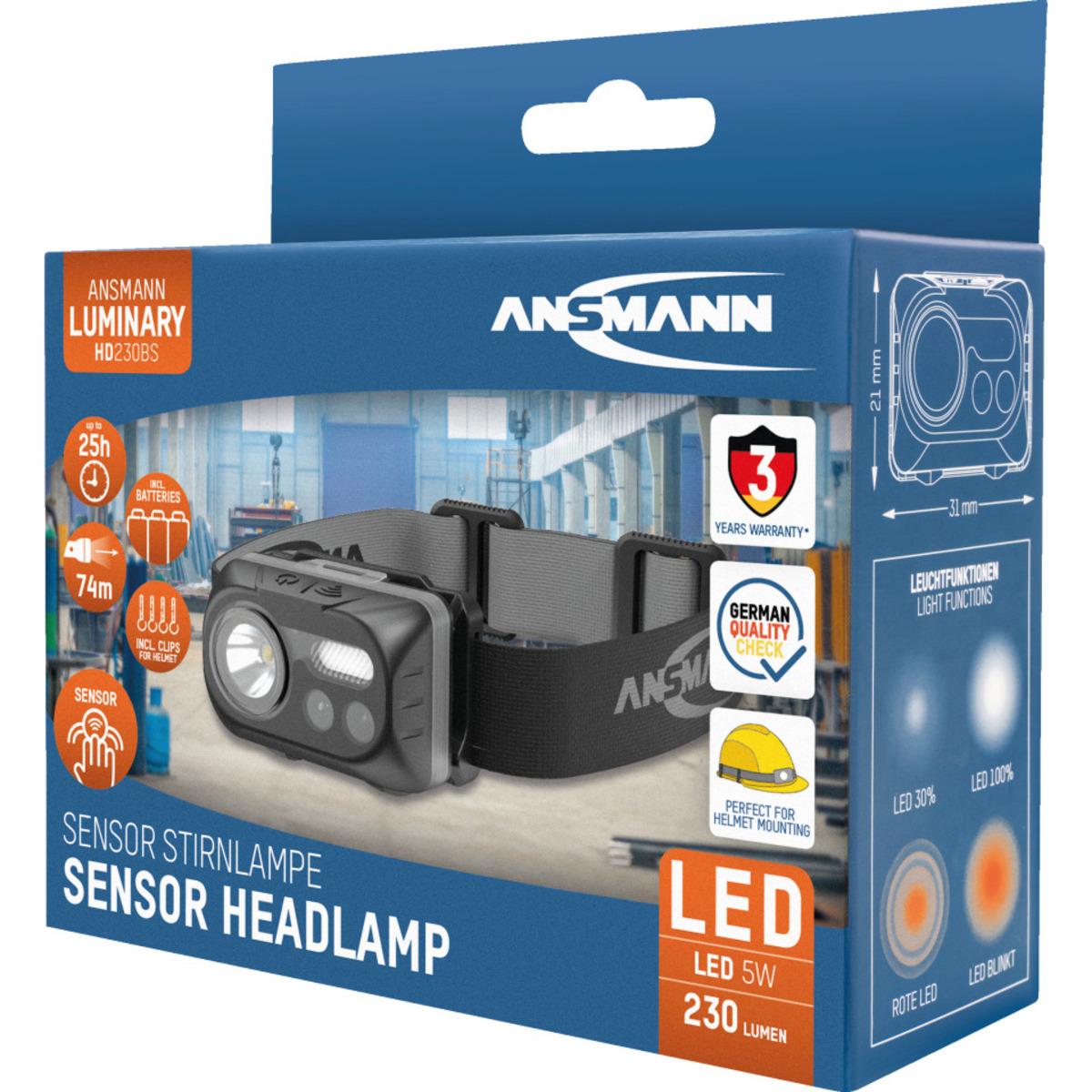 ANSMANN® Sensor-Stirnlampe mit großem Neigungswinkel für optimale Ausleuchtung