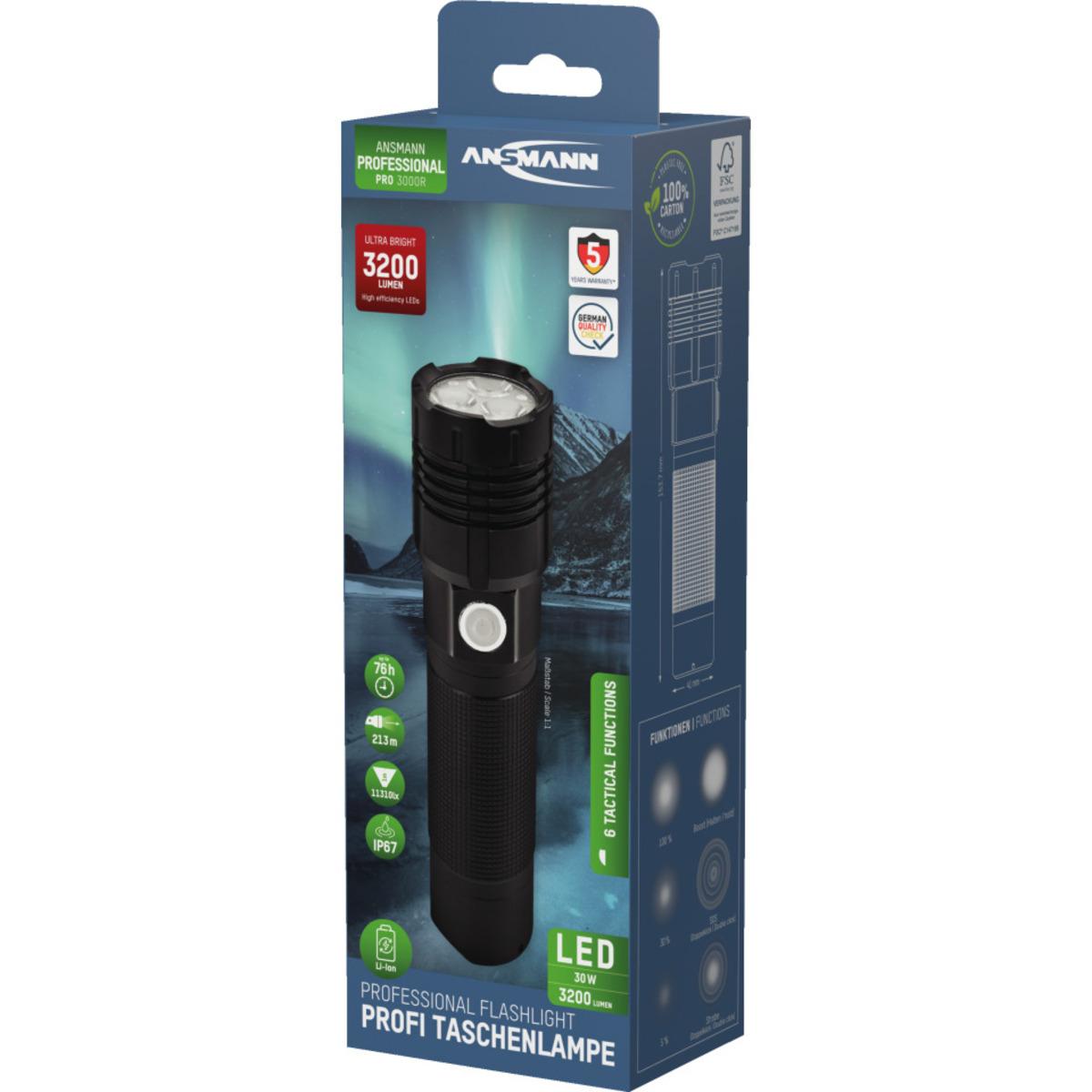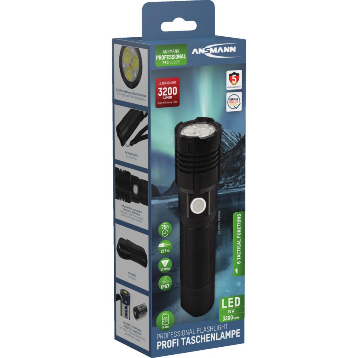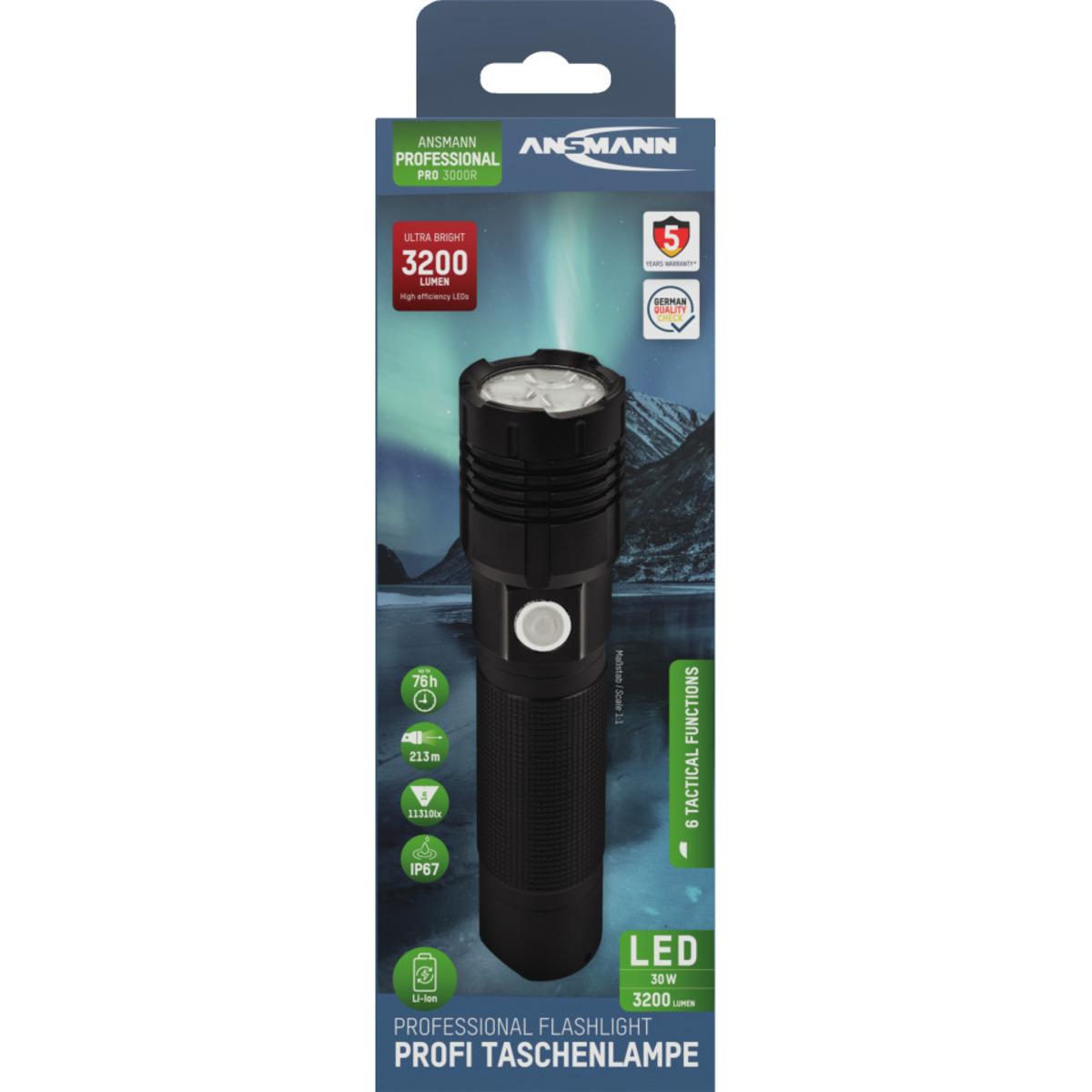 Auswahl: ANSMANN LED Taschenlampe Pro 3000R, wiederaufladbar, schwarz, Aluminium