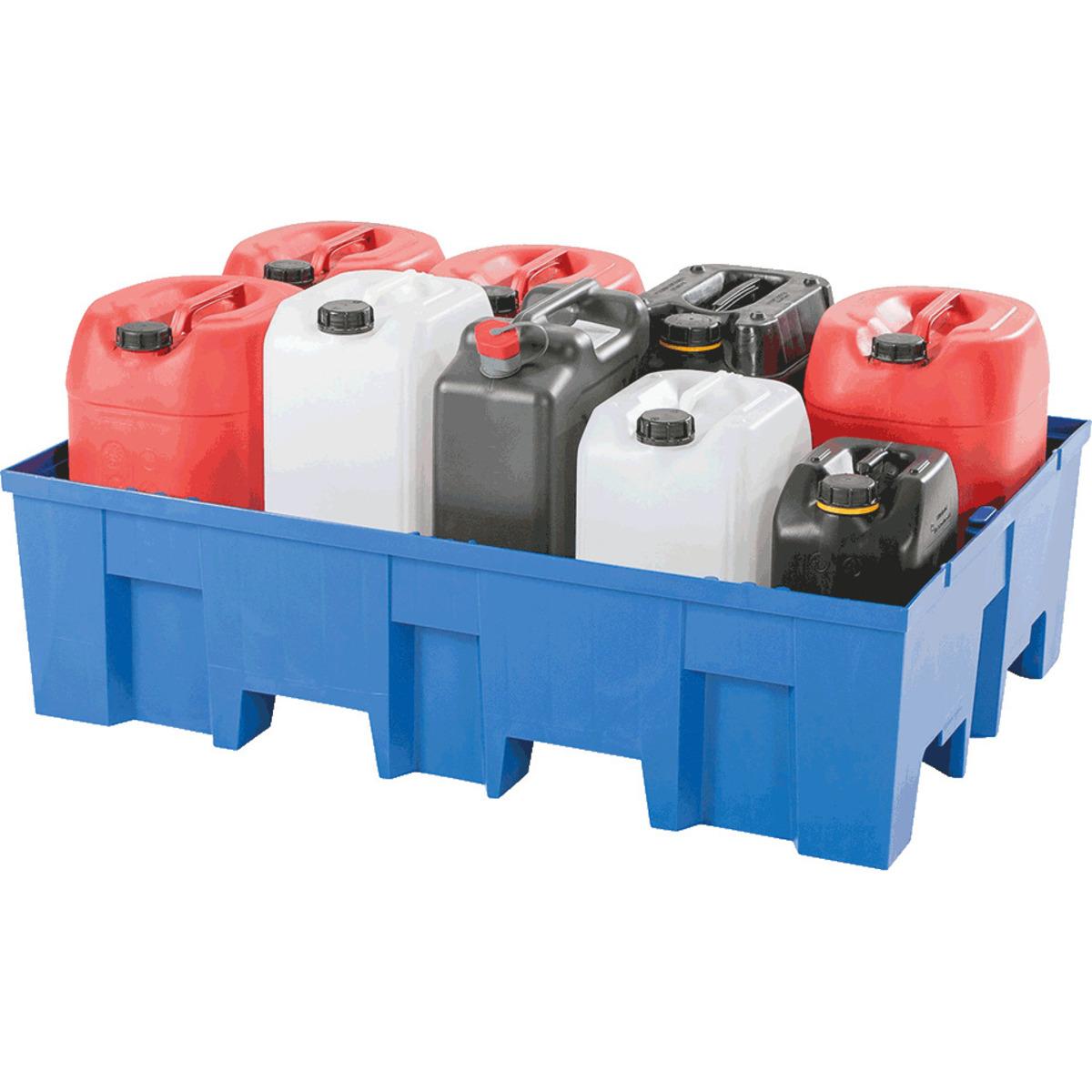 Unterfahrbare, robuste Auffangwanne zur Lagerung gewässergefährdender Flüssigkeiten aller Gefährdungsklassen.