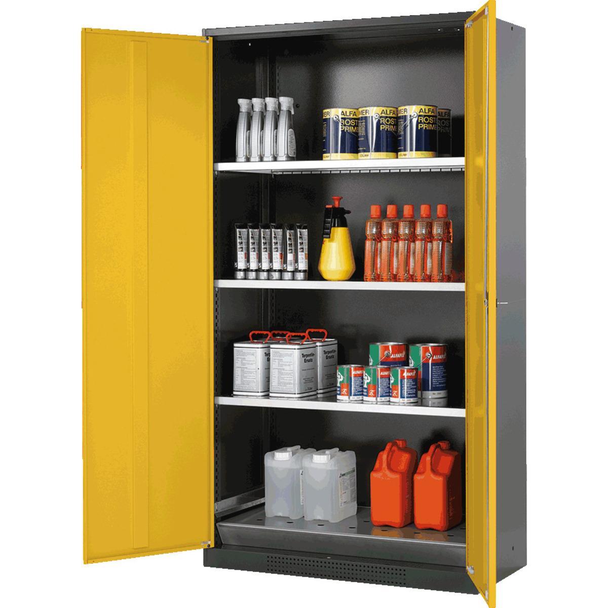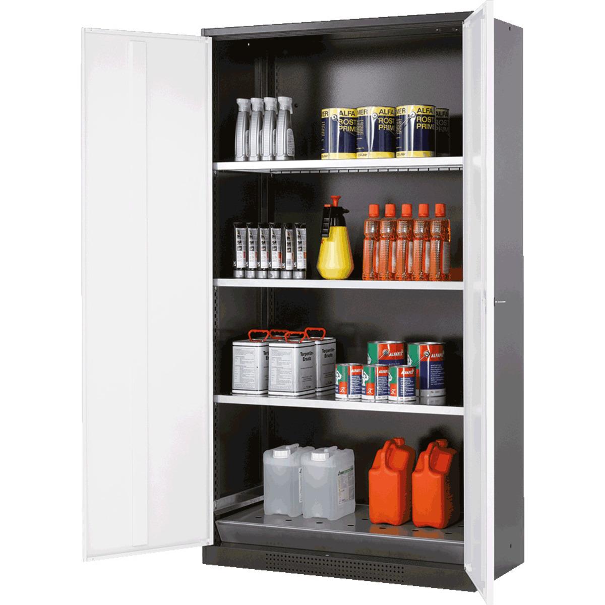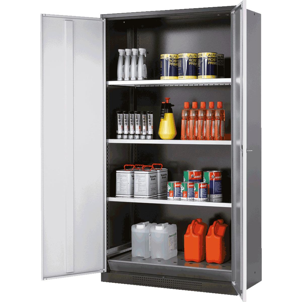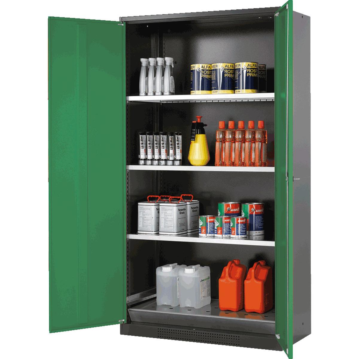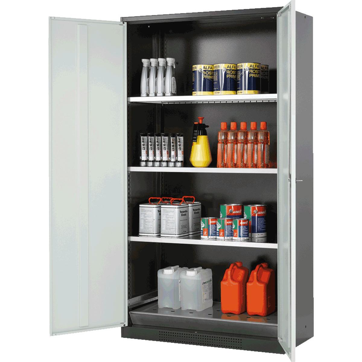 asecos Chemikalienschrank CS-Classic mit Flügeltüren, Fachböden und Bodenauffangwanne, abschließbar mit integriertem Zylinderschloss, Belüftungsschlitze an der Vorderseite
