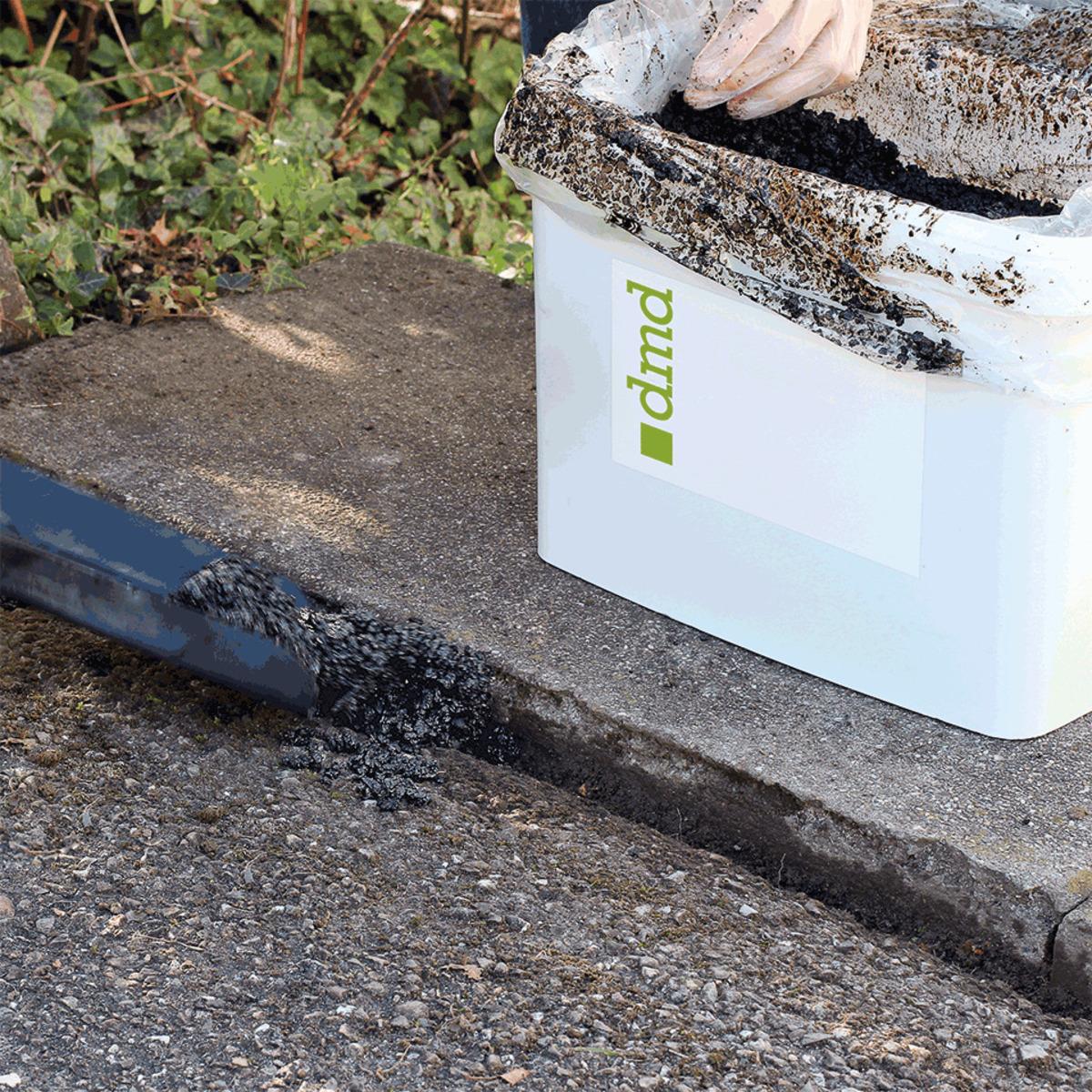 Das Asphalt-Reparatursystem ist eine Bitumen-Fertigmischung zur Reparatur von Schlaglöchern und abgenutzten Stellen oder den Höhenausgleich in Asphaltböden im Außenbereich. Für extreme Beanspruchung im Außenbereich. Gebrauchsfertige Mischung, verwendbar bei Nässe, Frost und Hitze, in kühler und belüfteter Umgebung lagern. Einbautiefe bis zu 100 mm in einer Schicht möglich, nach dem Auftragen mit einem Handverdichter verdichten. Die reparierte Stelle ist schnell wieder befahrbar.