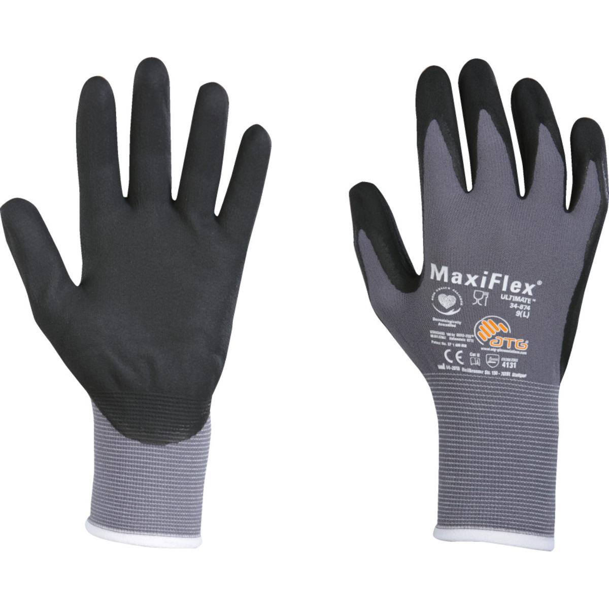 Auswahl: ATG Handschuh MaxiFlex® Ultimate, Kat.II, grau/schwarz, Nylon, 230mm, Größe 10