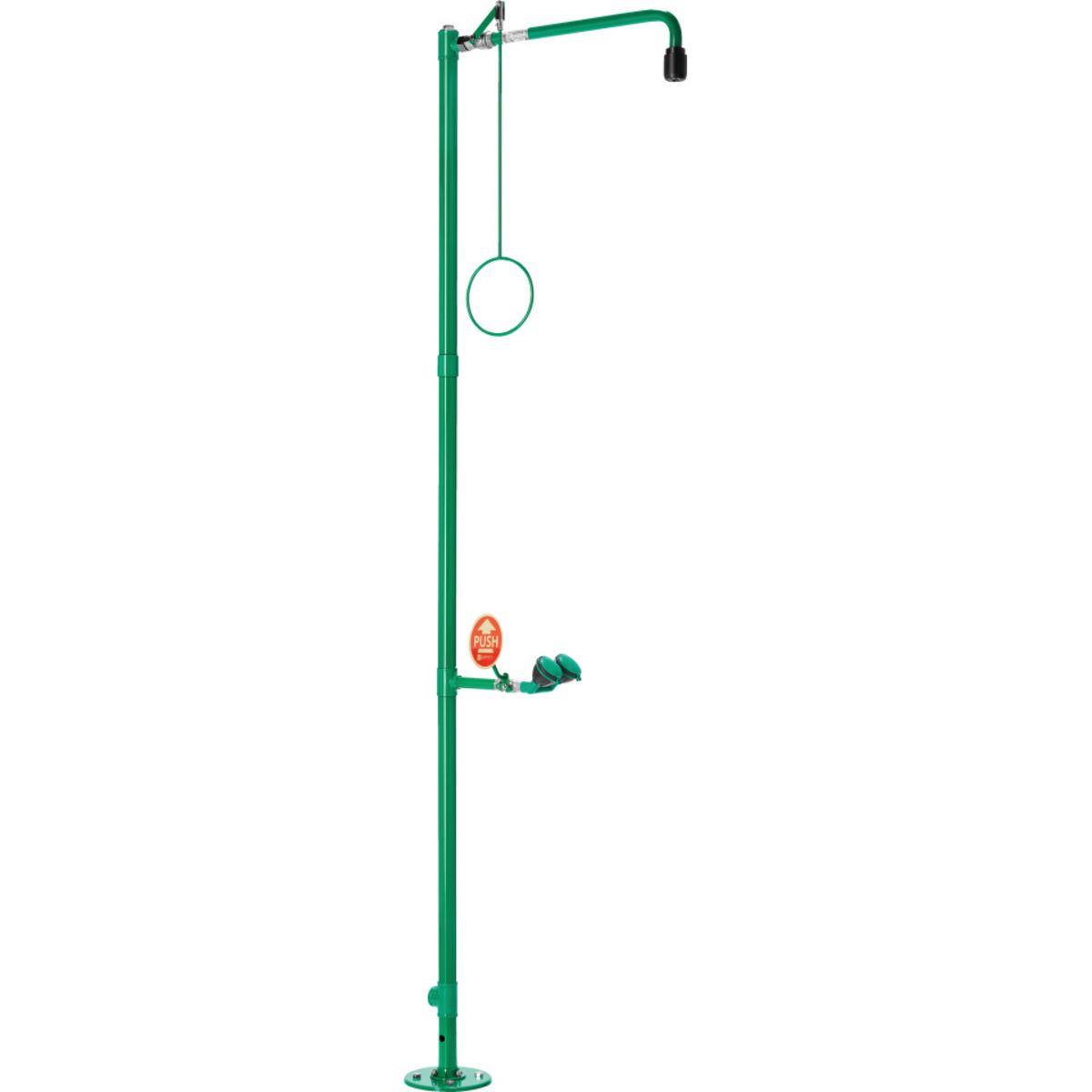 Platzsparende Kombinationen aus Körper-Notdusche und Augendusche, mit Hochleistungsduschkopf für einen begrenzten, gleichmäßigen und weichen Wasserstrahl, selbst entleerend, robuste Konstruktion.