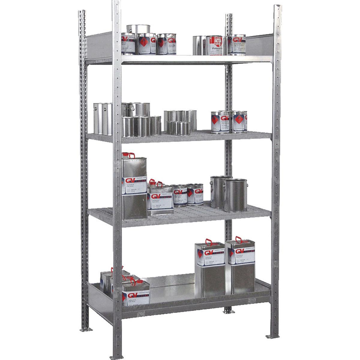 Auswahl: Kleingebinderegal, Grundregal mit 3 Gitterrostböden und 1 Auffangwanne