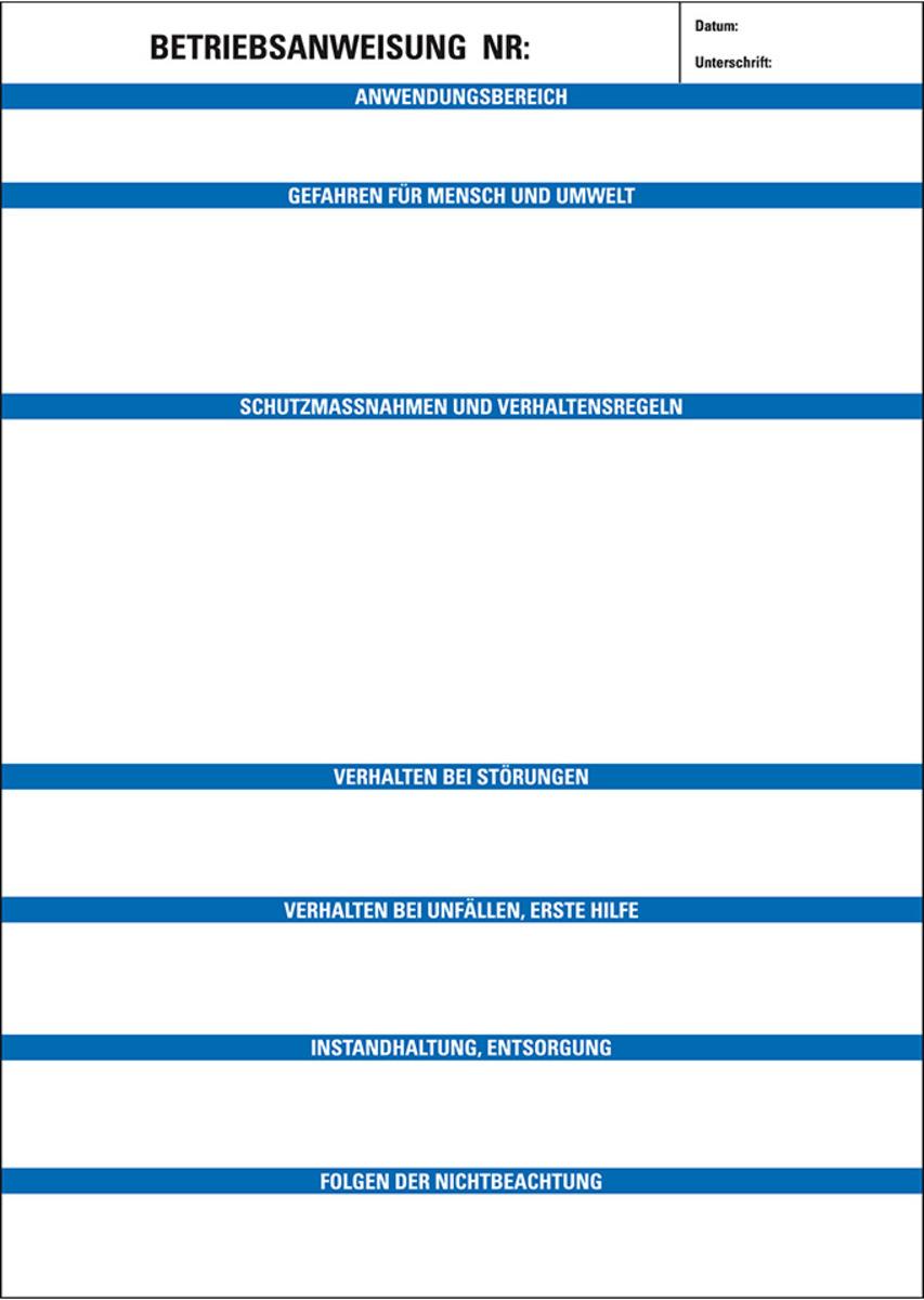 Blanko-Betriebsanweisung im Rahmen zum Selbstbeschriften.
