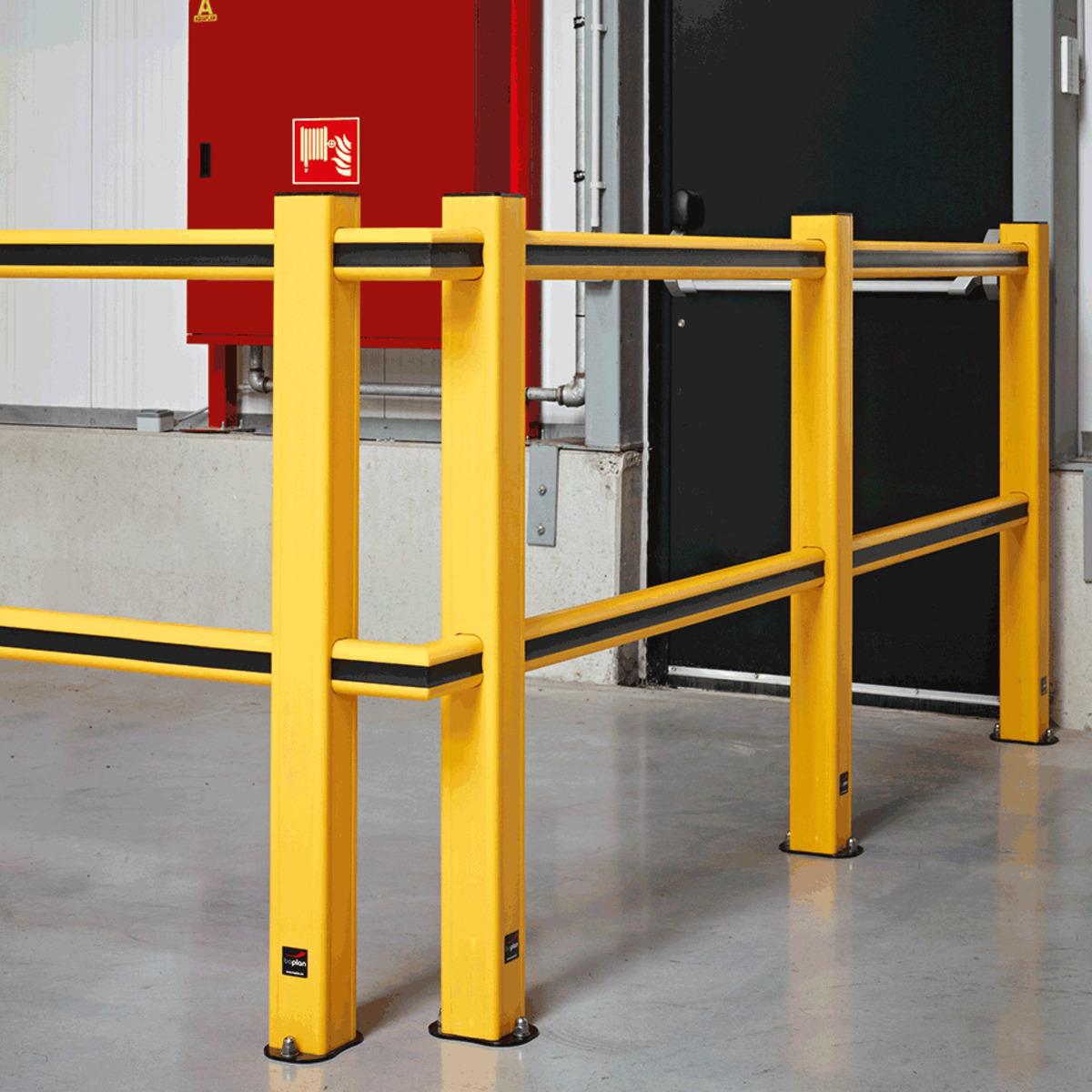 Flexibler Rammschutz Light Flex impact® von boplan® zum Schutz von Maschinen, Lagereinrichtungen oder Gebäudeteilen, absorbiert Aufprallkräfte und reduziert Anfahrschäden an Fahrzeugen und Schutzgeländer, wartungsfrei, beliebig erweiterbar, zum Aufdübeln und inklusive Befestigungsmaterial