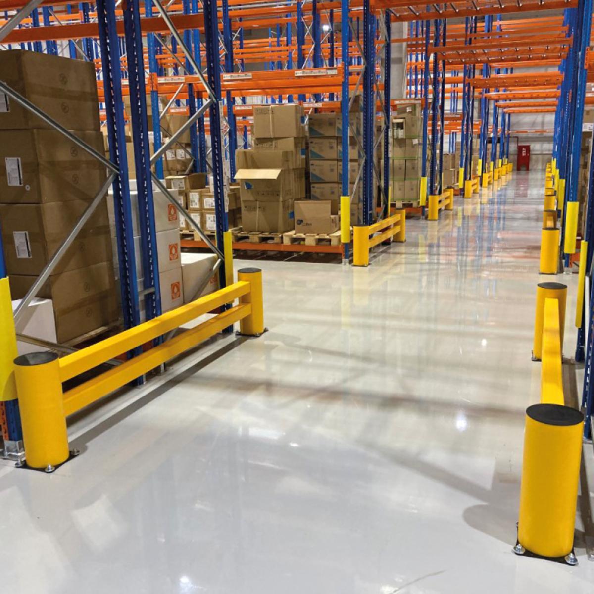 Die Planke schützt Maschinen und Lagereinrichtungen bei Kollisionen. Durch das Absorbieren der Aufprallenergie bleibt die Bodenverankerung unbeschädigt. Nach einem Aufprall kehrt die Planke wieder in ihre ursprüngliche Form zurück. Sie ist somit extrem robust, langlebig und außerdem beliebig erweiterbar.