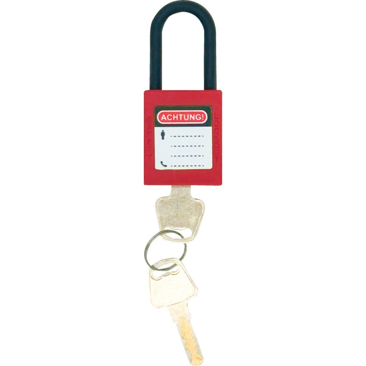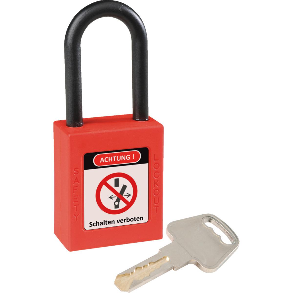 Auswahl: Vorhängeschloss z.Wartungssicherung, rot, Kunststoffbügel, 37x89x20mm, 2 Schlüssel