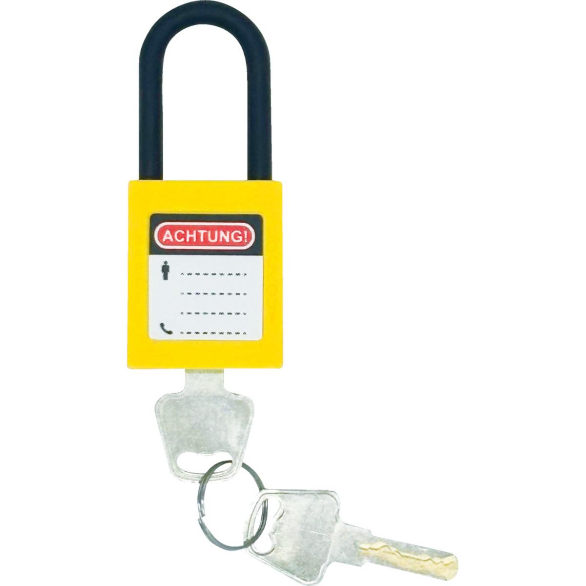 Auswahl: Vorhängeschloss z.Wartungssicherung, gelb, Kunststoffbügel, 37x89x20mm, 2 Schlüssel