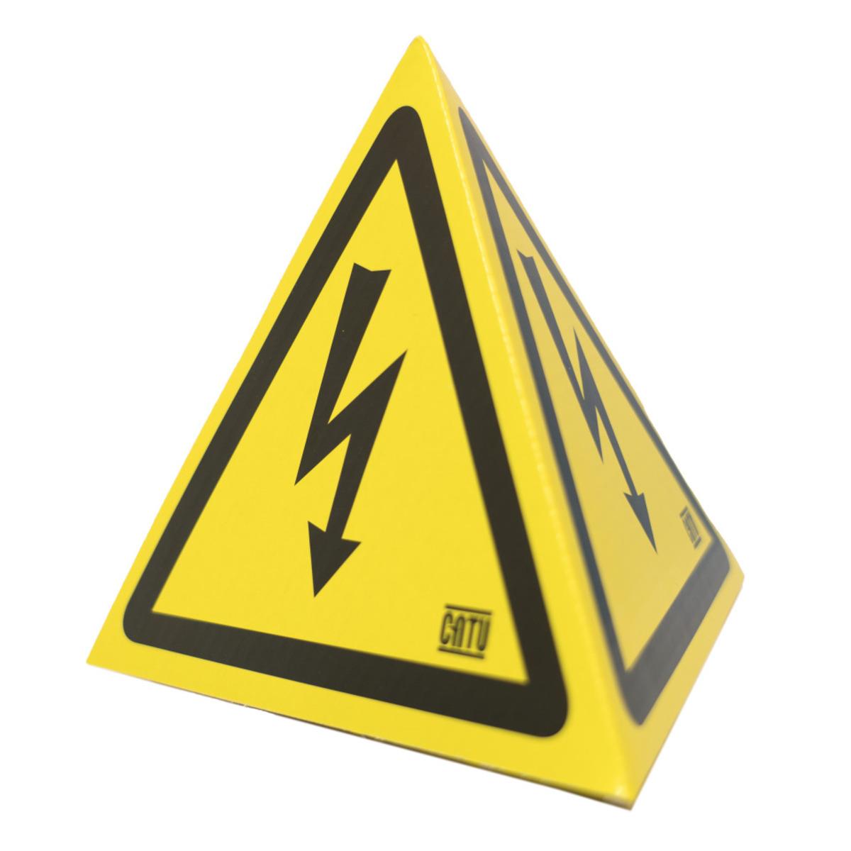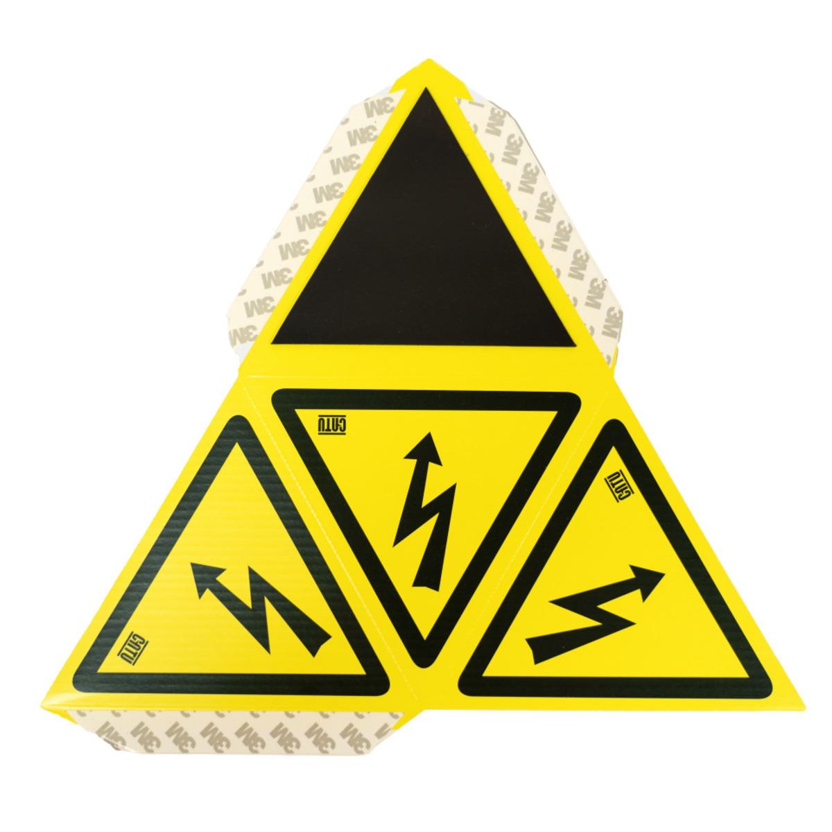 Warnpyramide mit Warnzeichen auf 3 Seiten zur Warnung vor gefährlicher elektrischer Spannung, zum Selbstaufbau mit Magnetfuß